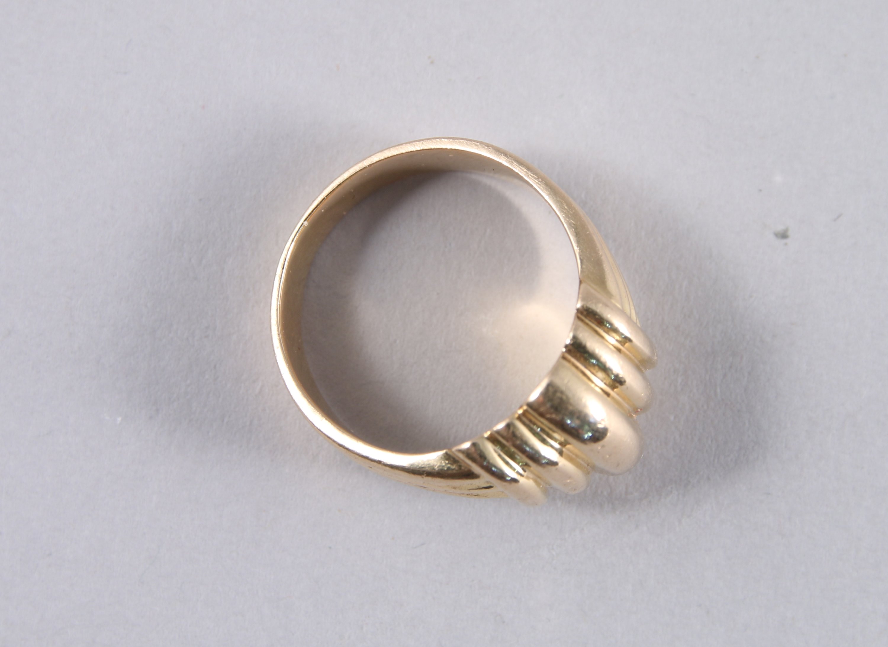 BAGUE en or jaune 750 millièmes ornée de godrons et cannelures.