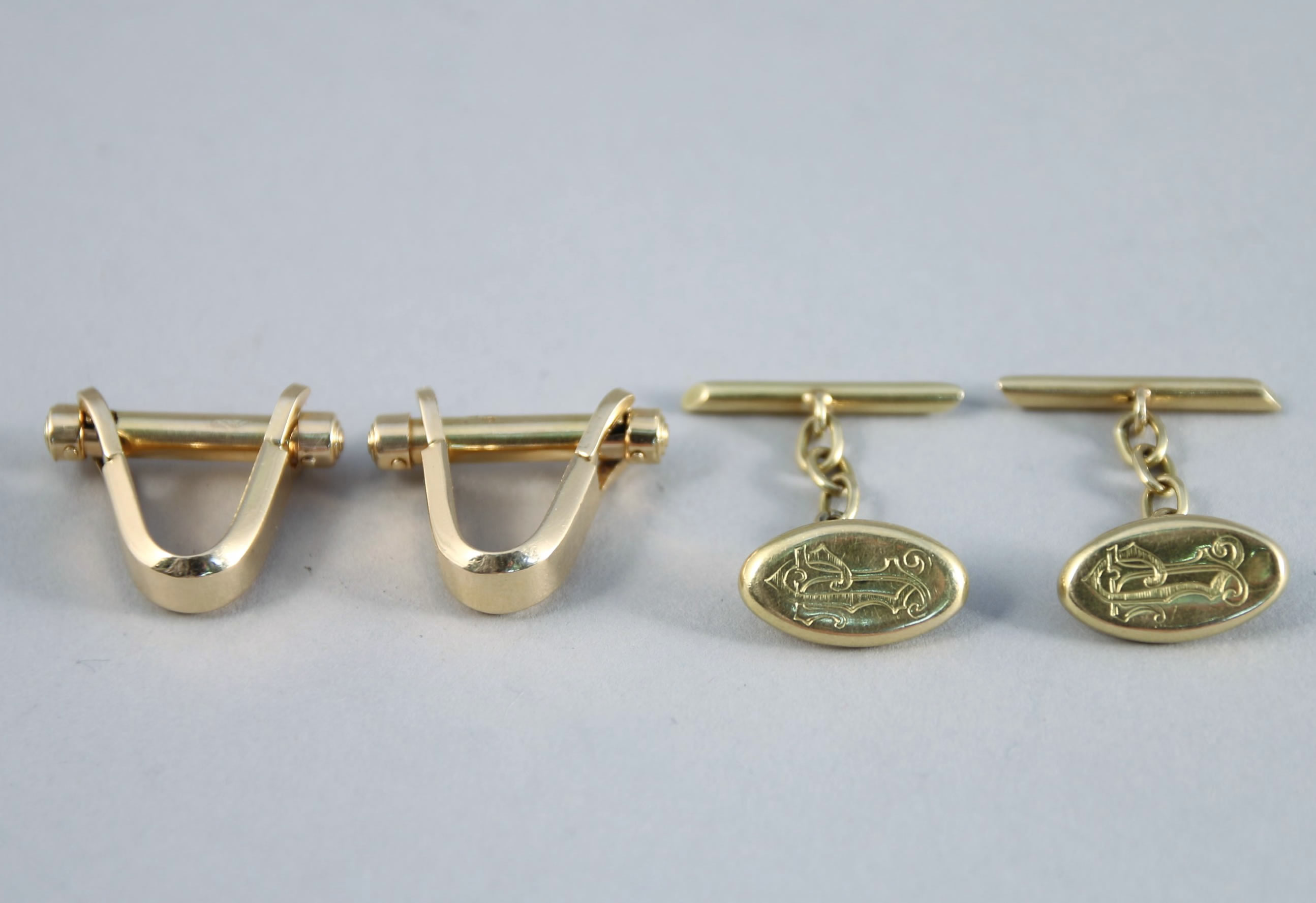 Réunion de DEUX PAIRES DE BOUTONS DE MANCHETTES en or jaune 750 millièmes :