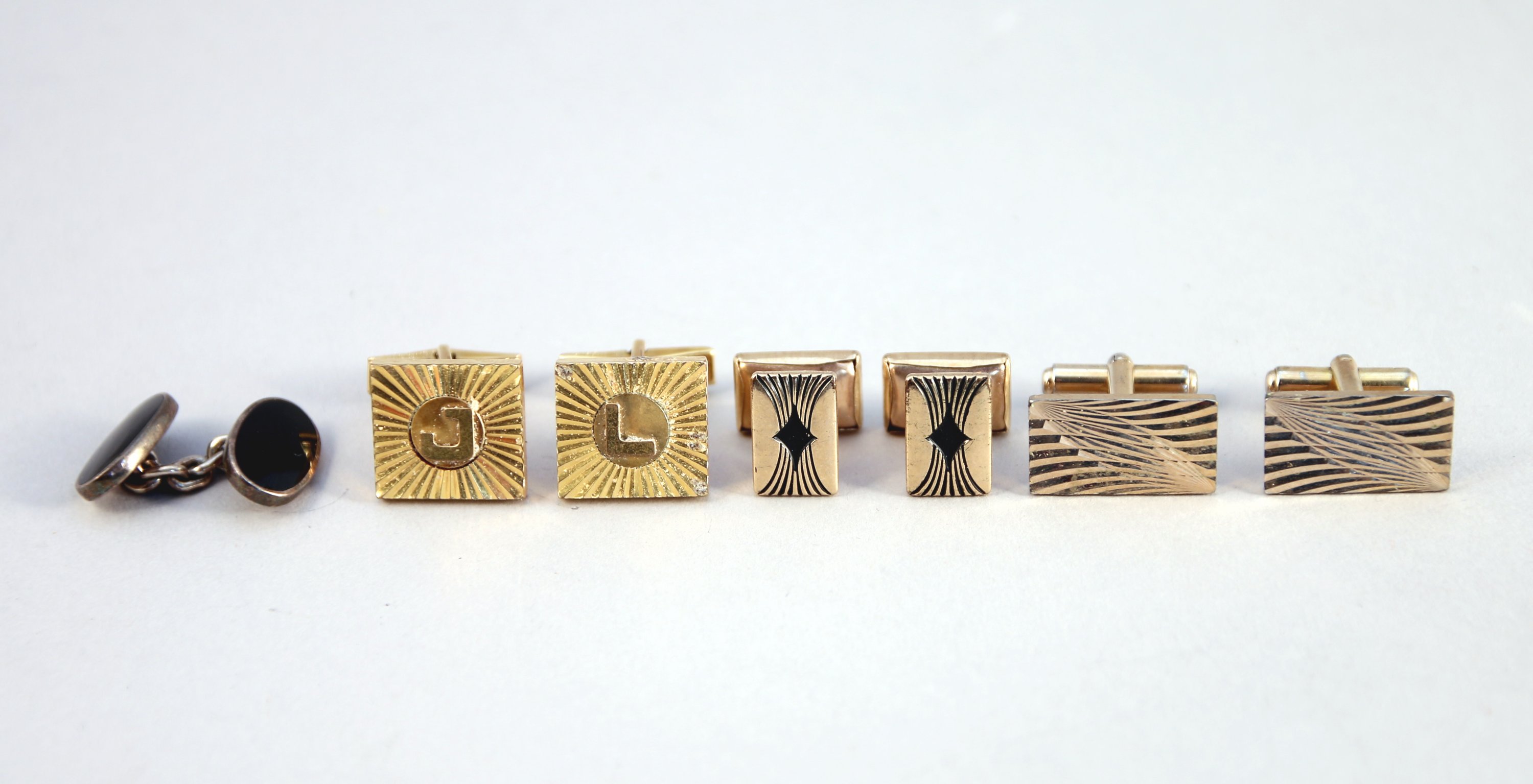JOINT : TROIS PAIRES DE BOUTONS DE MANCHETTES en métal doré et un BOUTON DE MANCHETTES en argent et onyx.