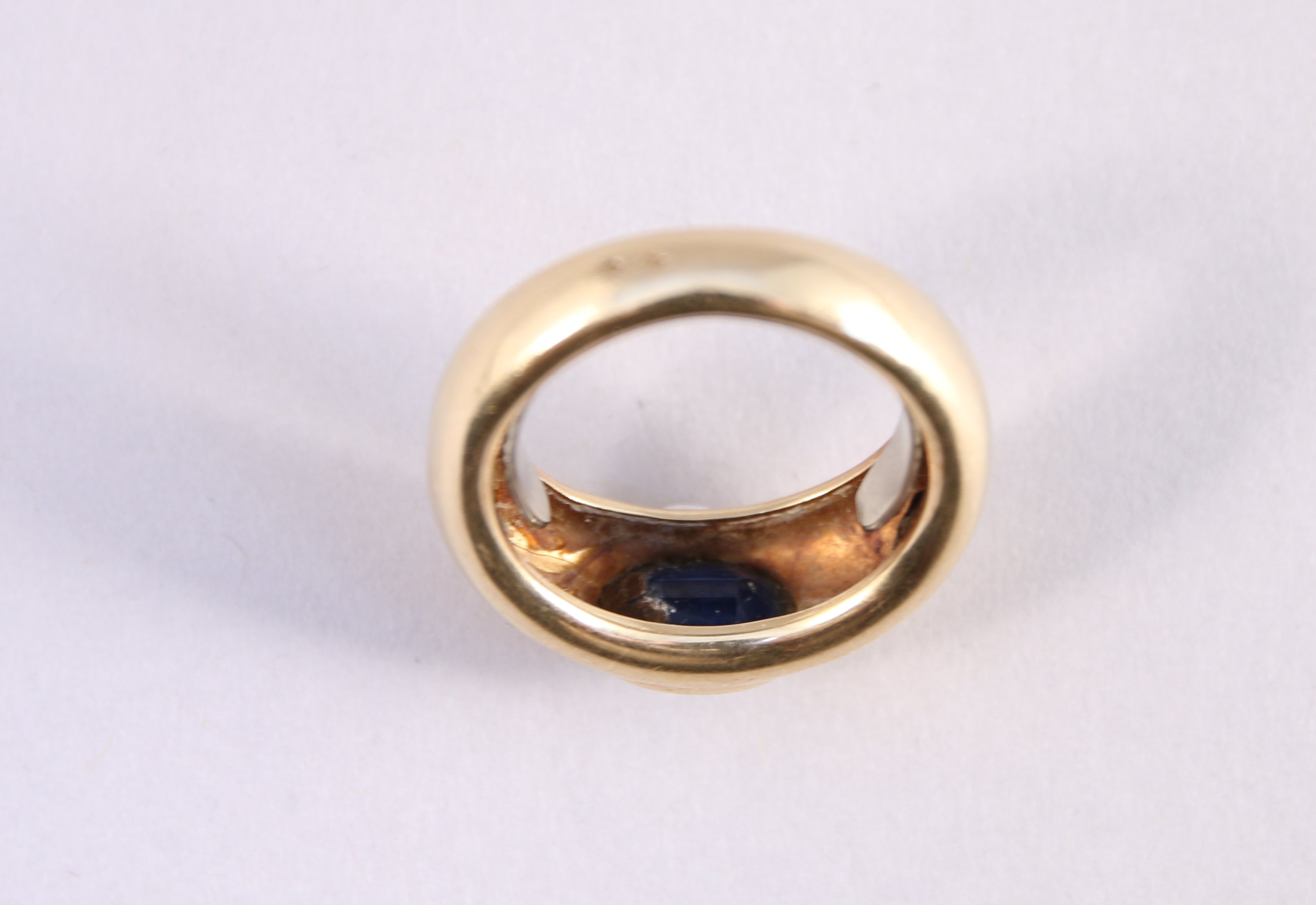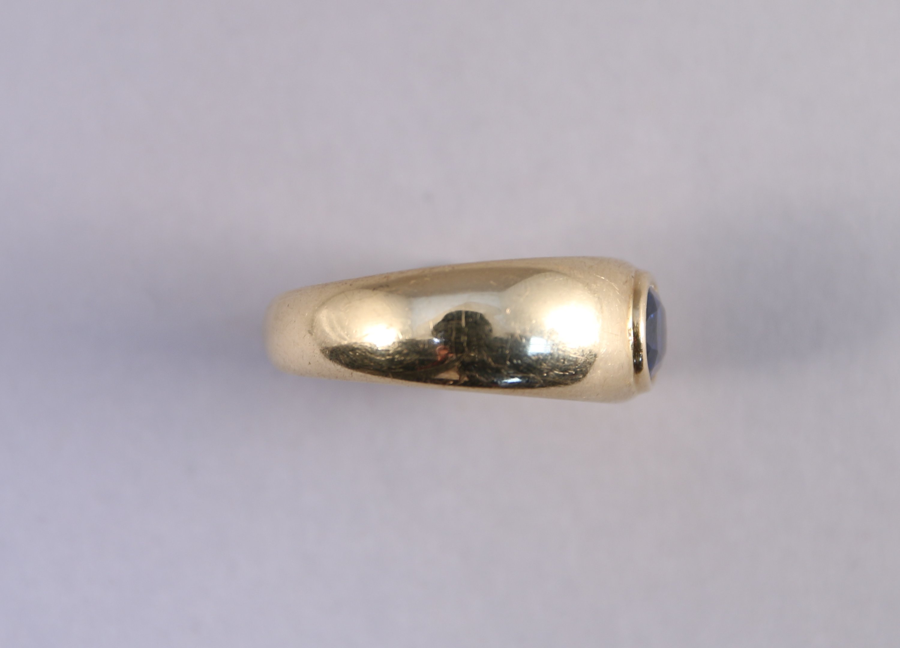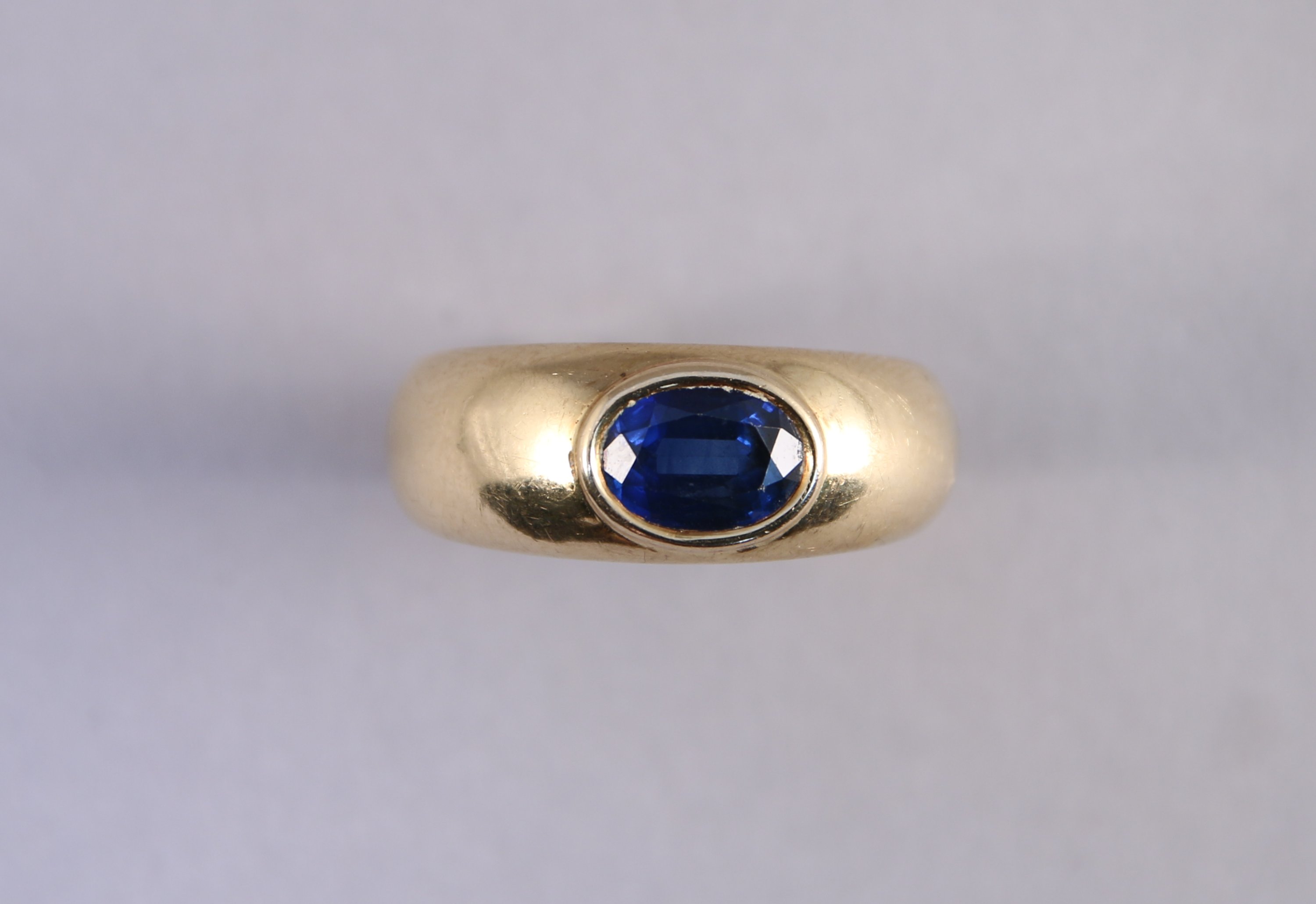 BAGUE jonc en or jaune 750 millièmes, ornée d'un SAPHIR chauffé, de forme ovale, serti clos.