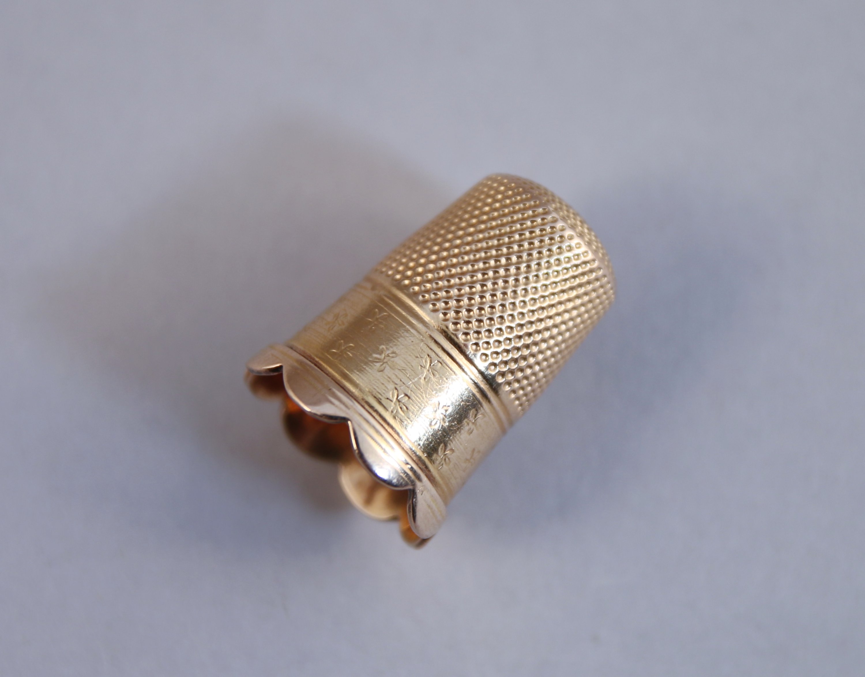 DÉ à COUDRE en or jaunemonogrammé MMPP. À charge de...