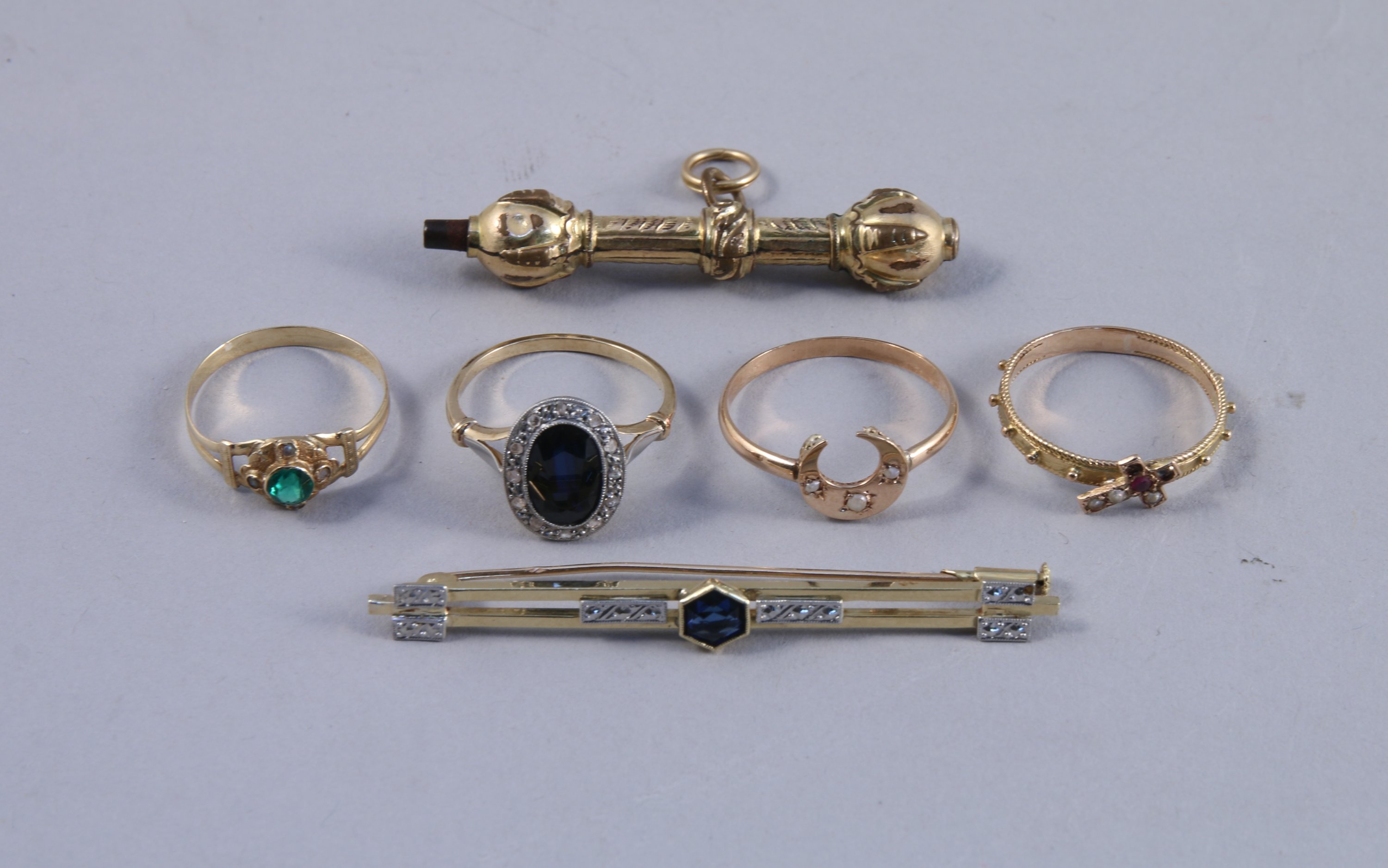 Réunion de CINQ BIJOUX en or 750 millièmes :