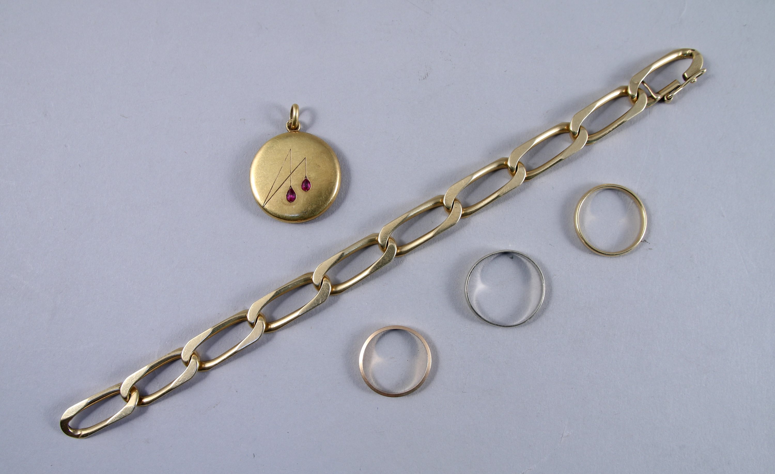 Réunion de CINQ BIJOUX en OR jaune 750 millièmes :