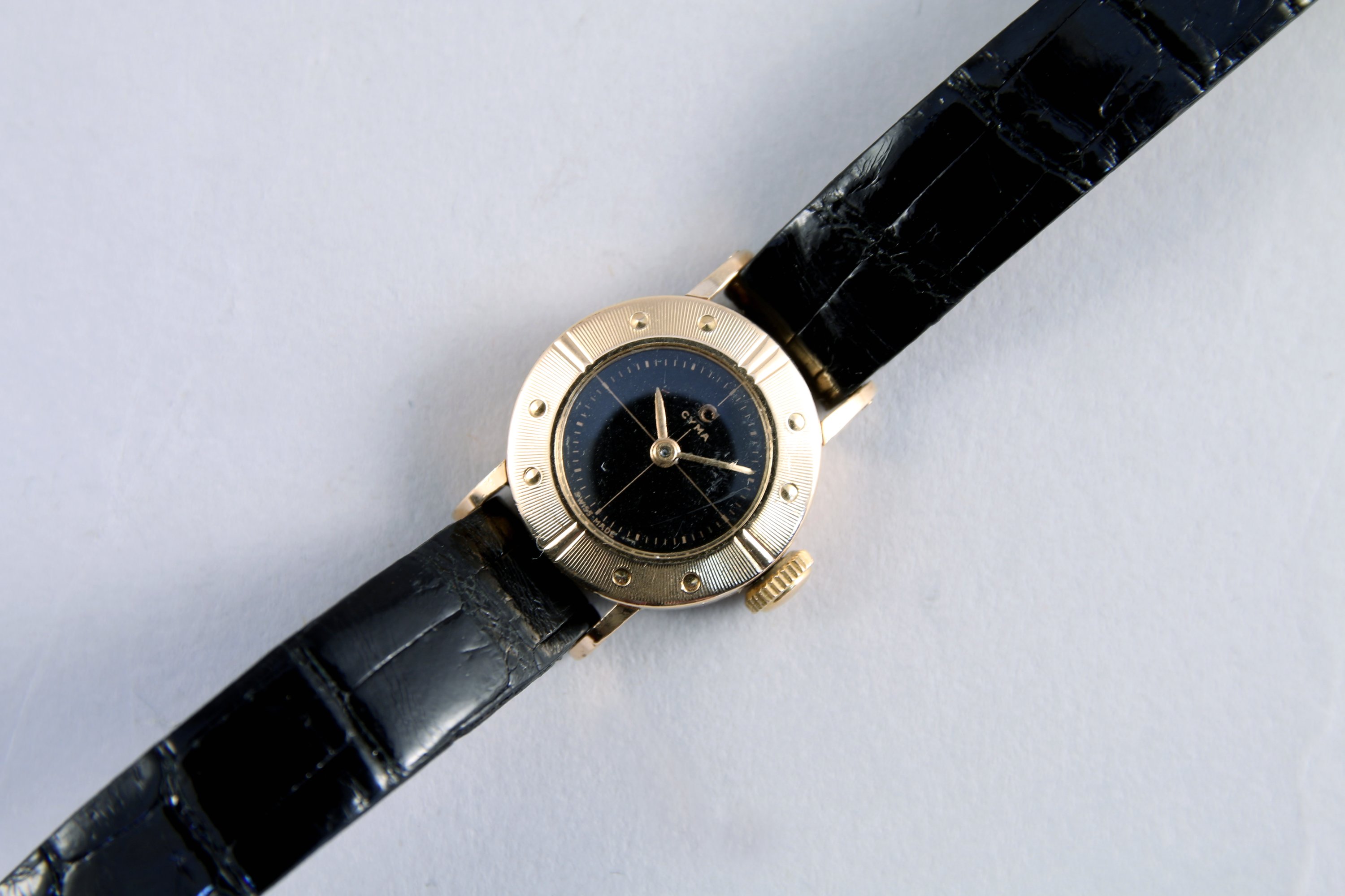 JOINT : CYMA. MONTRE-BRACELET de dame, boîtier et boucle en or 750 millièmes.
