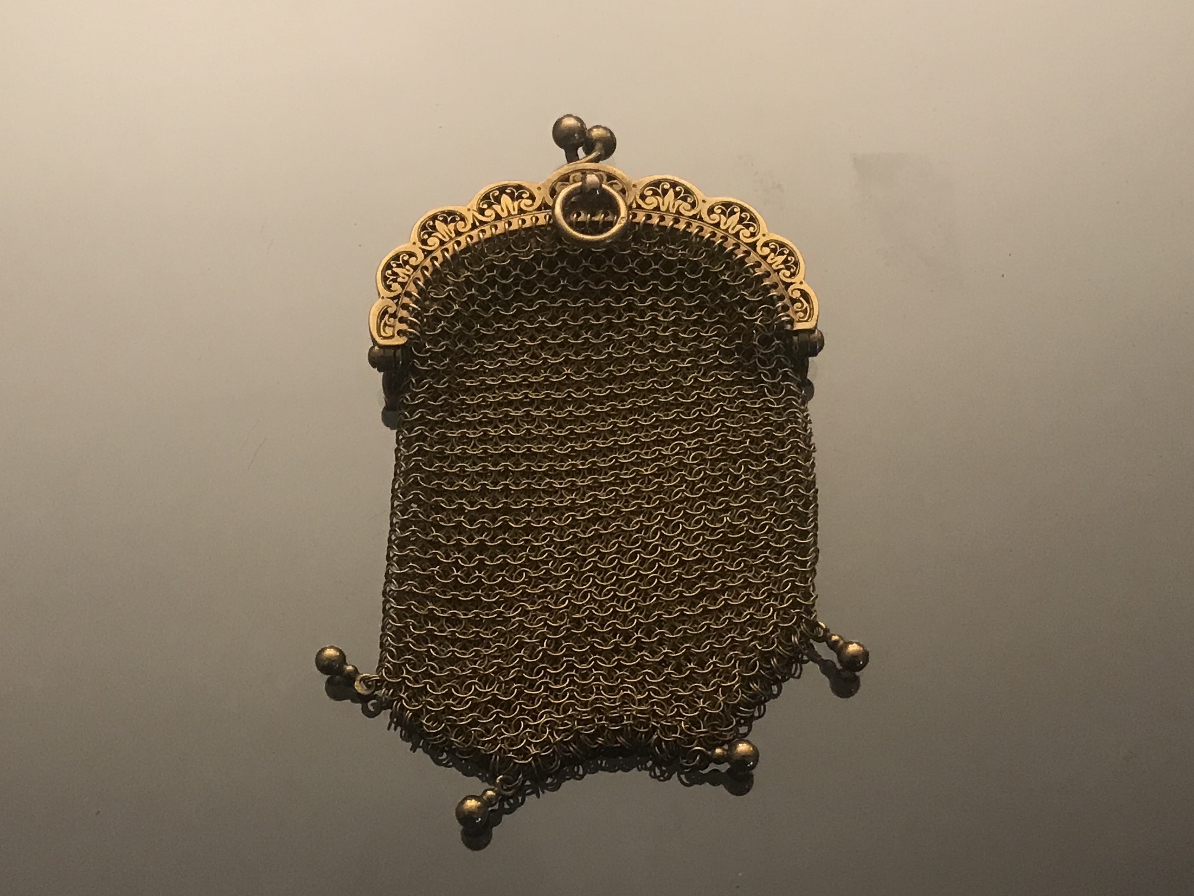Petite BOURSE en or jaune, le fermoir ajouré de fleurs de muguets stylisées.