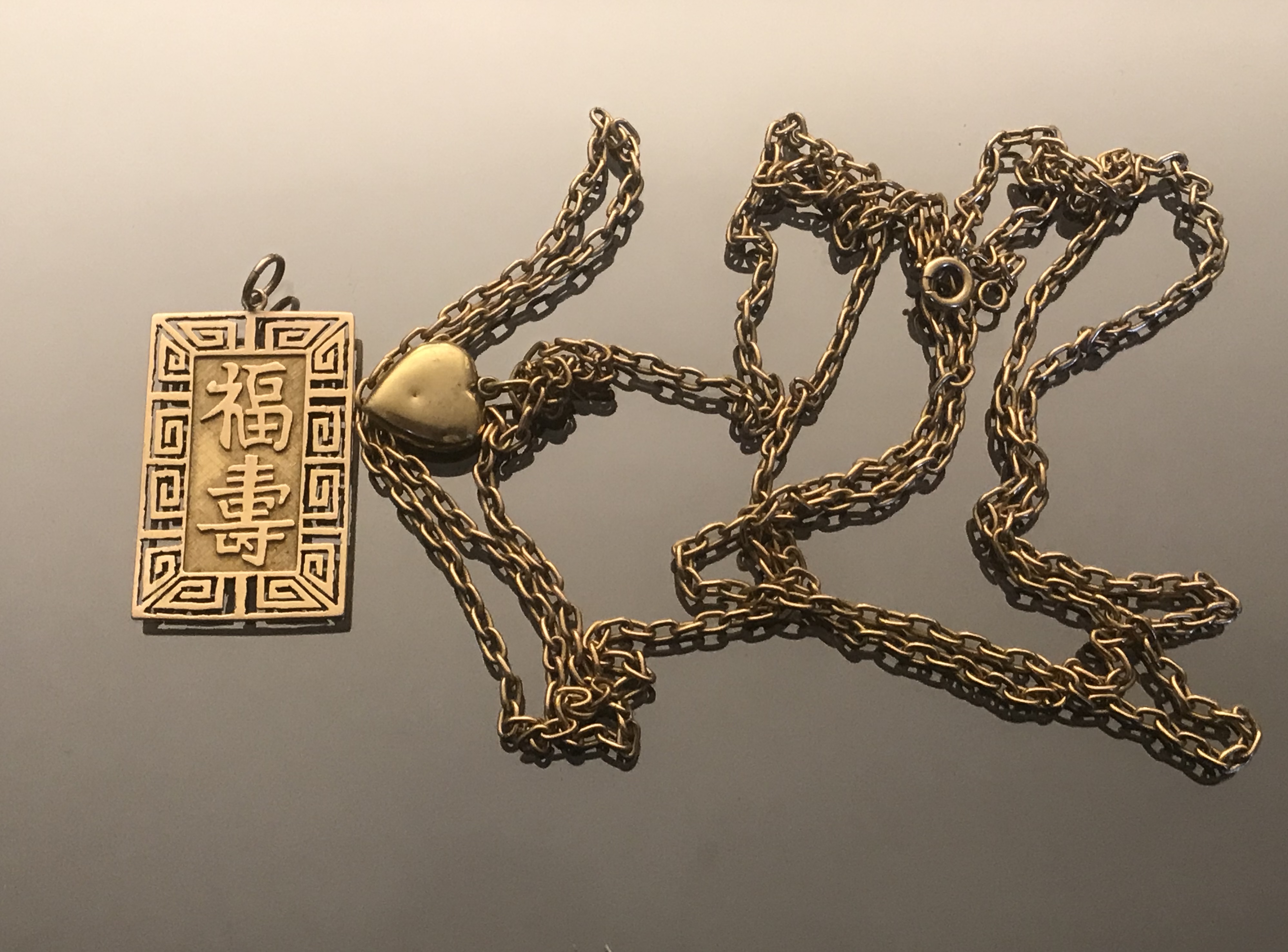 MÉDAILLON en or jaune de forme rectangulaire onré d'odéogrammes chinois.