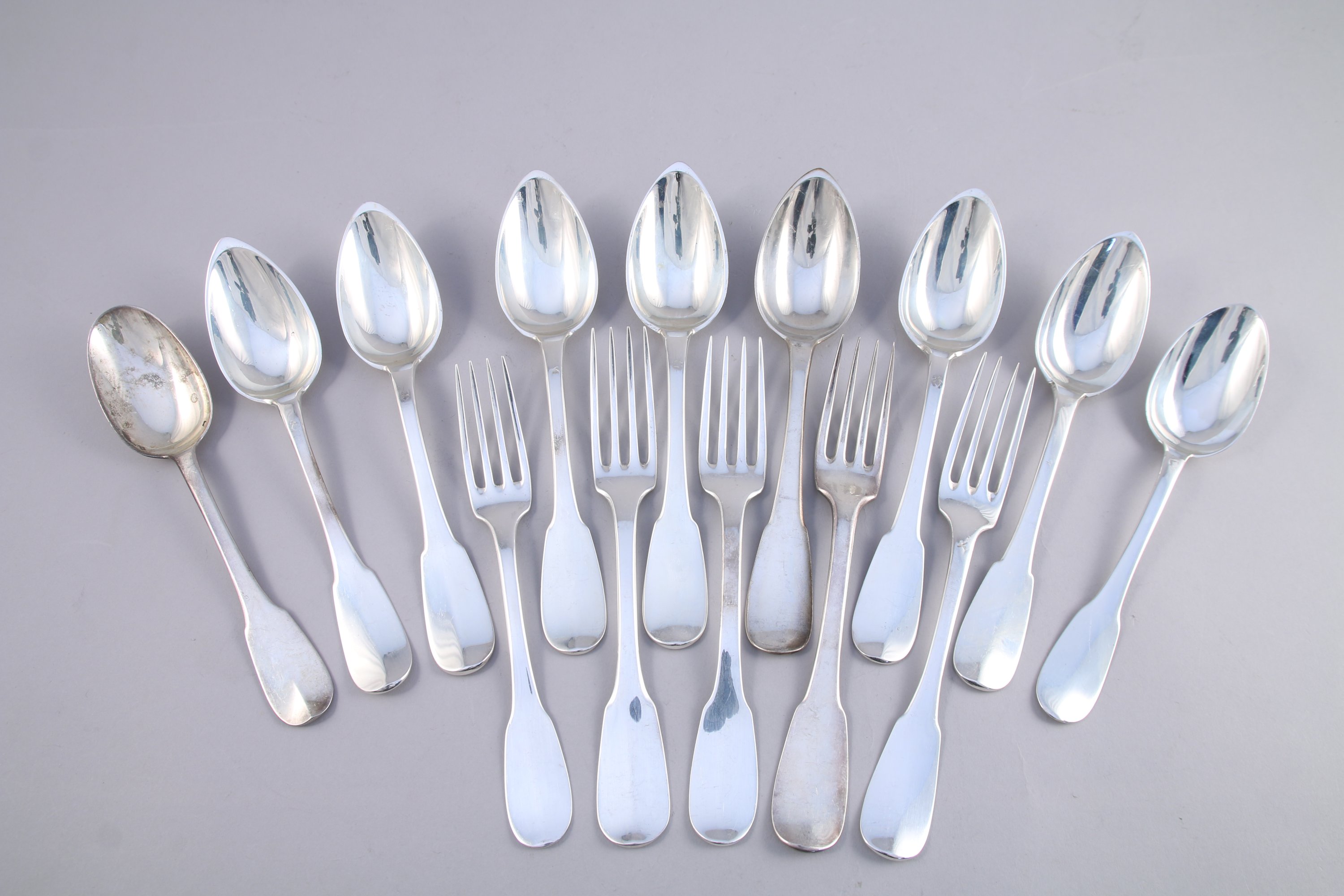 RÉUNION de 20 PIÈCES : 14 CUILLÈRES et SIX FOURCHETTES en argent, modèle uniplat :