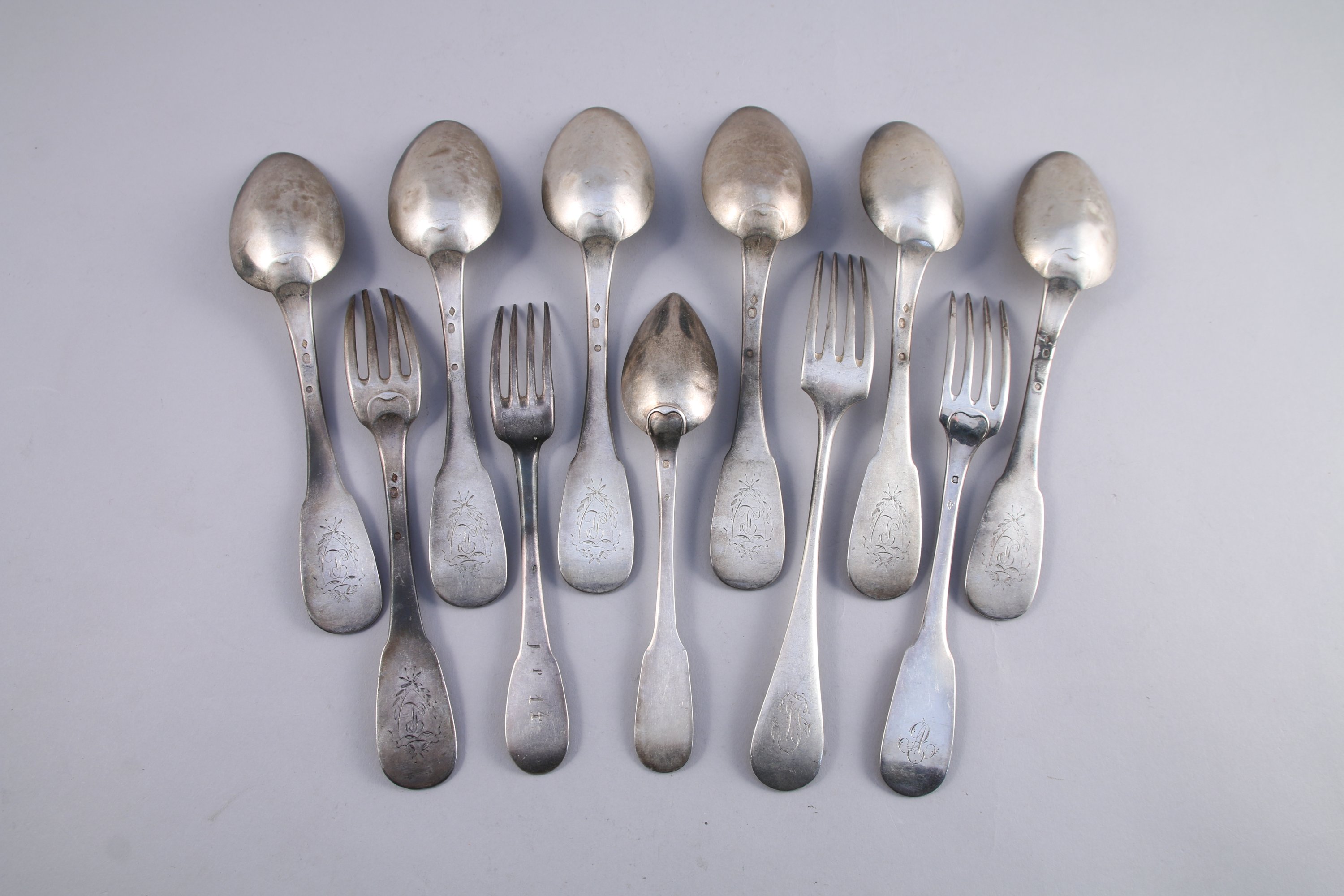 - QUATRE FOURCHETTES et SEPT CUILLÈRES. Vieillard (Paris 1819-1838).