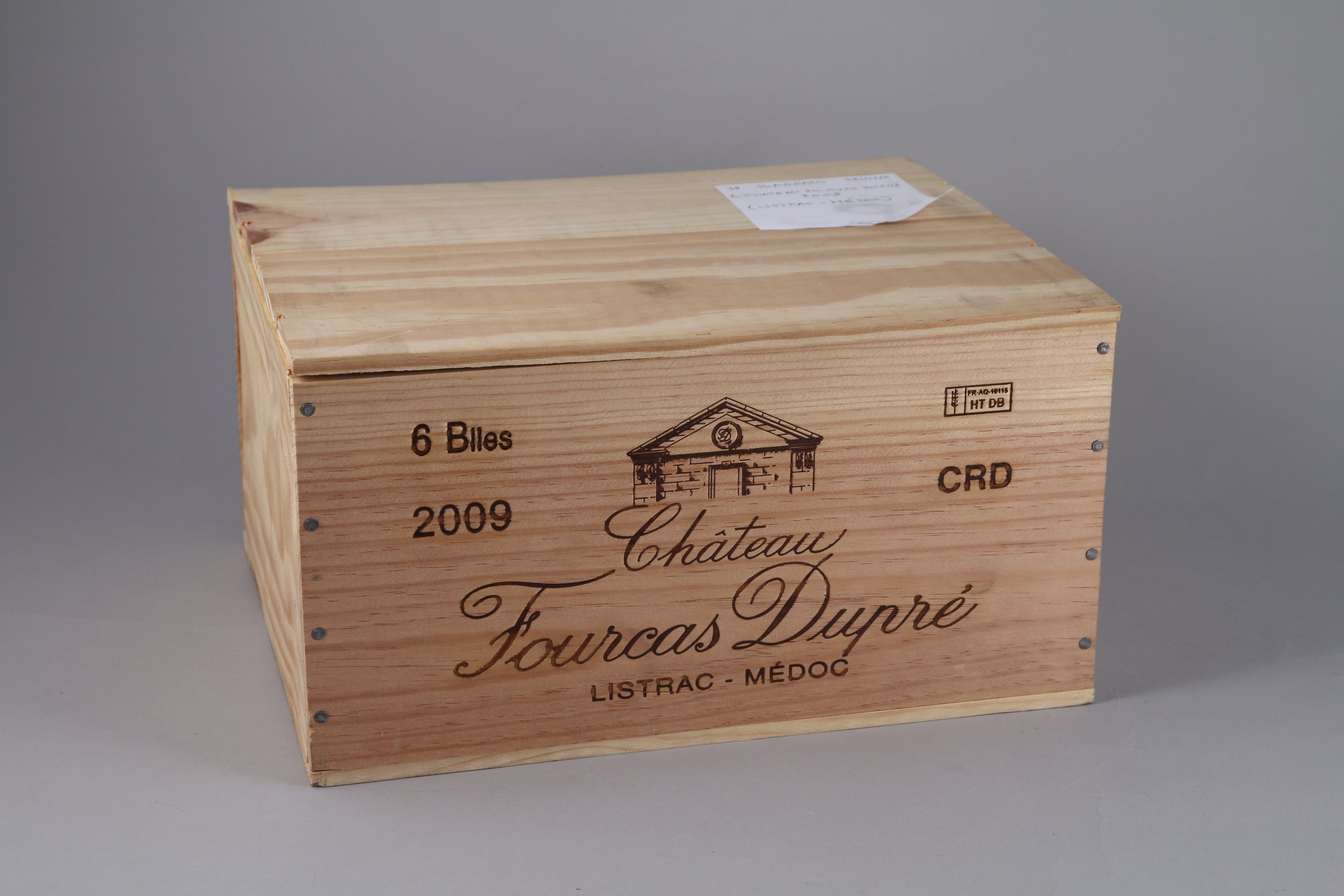 LISTRAC-MÉDOC. Château Fourcas Dupré, 2009. 6 bouteilles dans leur caisse en bois.