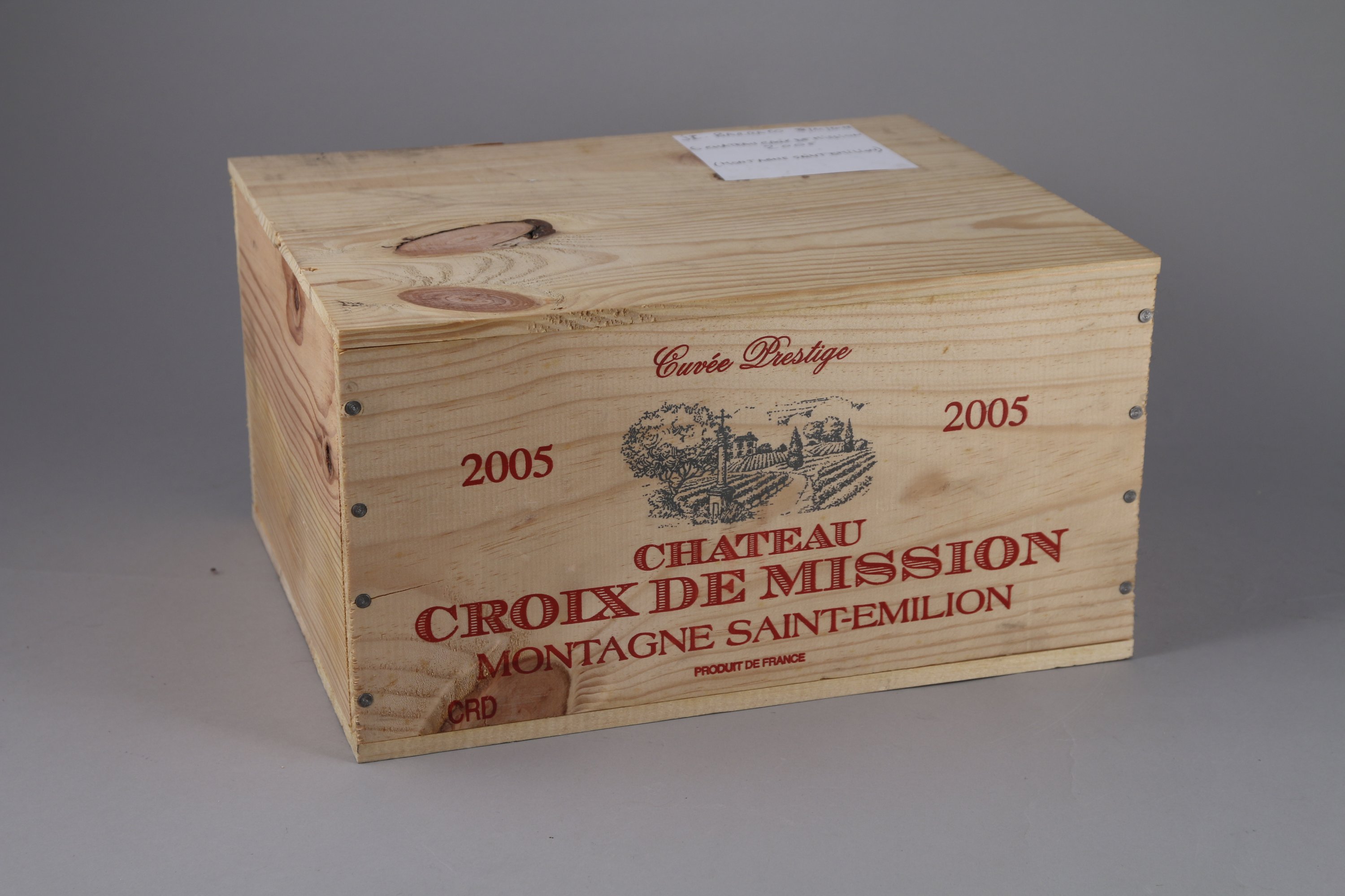 MONTAGNE-SAINT-ÉMILION. Château Croix de Mission, 2005. 6 bouteilles dans leur caisse en bois.