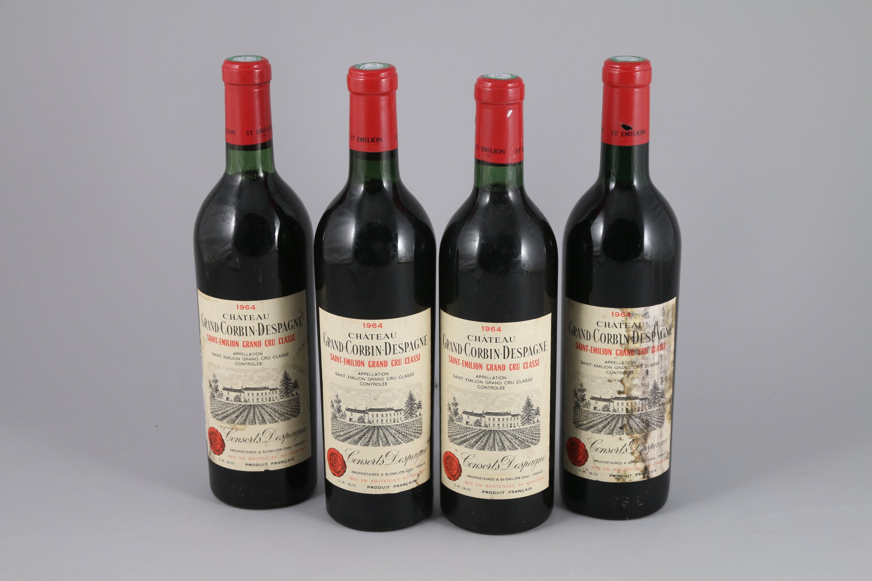 SAINT-ÉMILION. Grand-Corbin-Despagne, GCC, 1964. 4 bouteilles. (BG, une étiquette abimée).