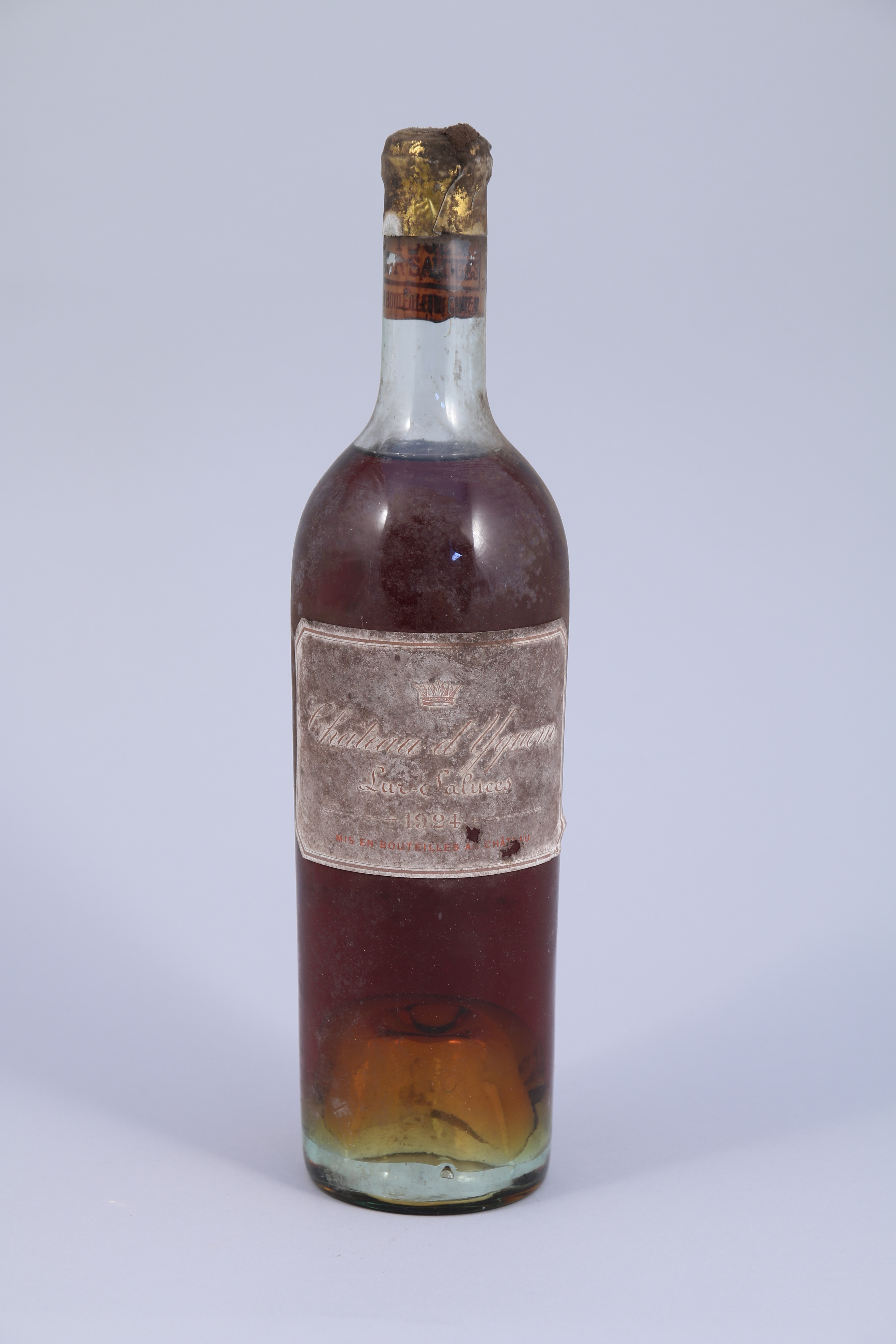 SAUTERNES. Château d'Yquem, Lur-Saluces, 1er Cru Supérieur, 1924. 1 bouteille (HE, étiquette abîmée et décollée)