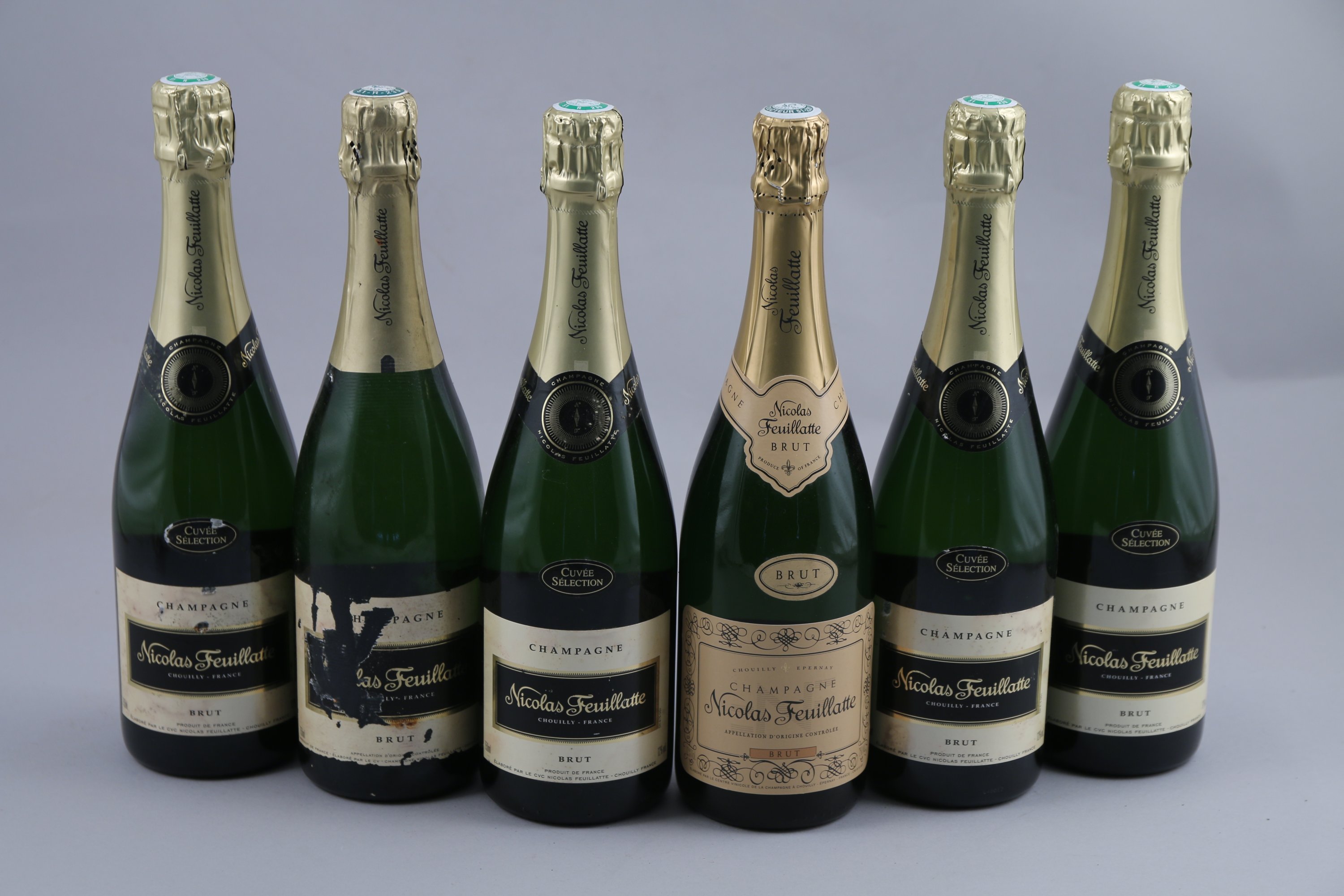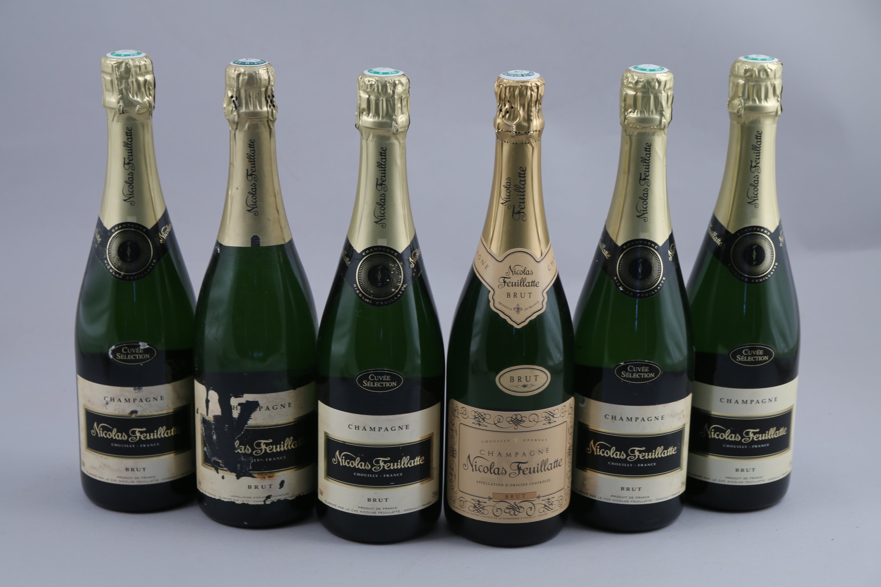 CHAMPAGNE. Nicolas Feuillatte, Champagne Brut. 6 bouteilles. (N, étiquettes déchirées)