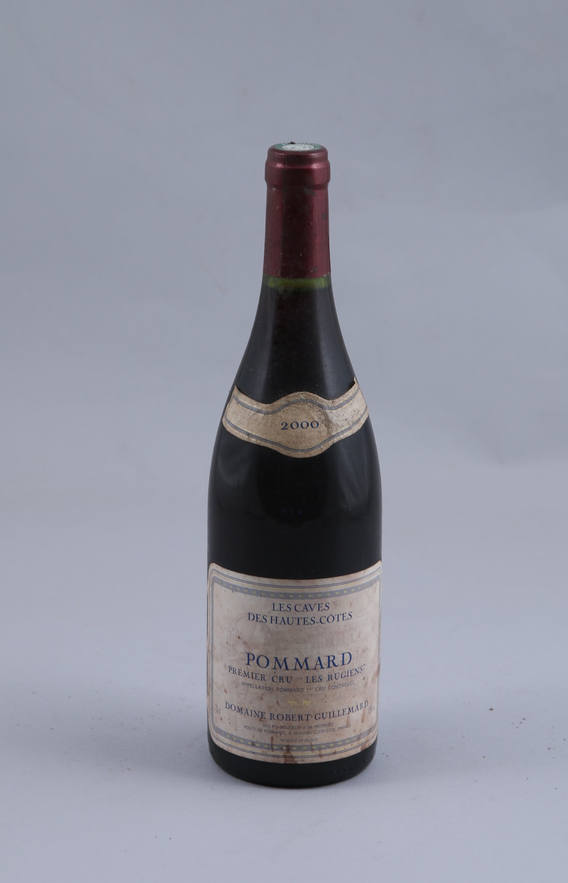 POMMARD. Les rugiens, premier cru, Robert Guillemard, 2000. 3 bouteilles (N, étiquettes tachées et déchirées)