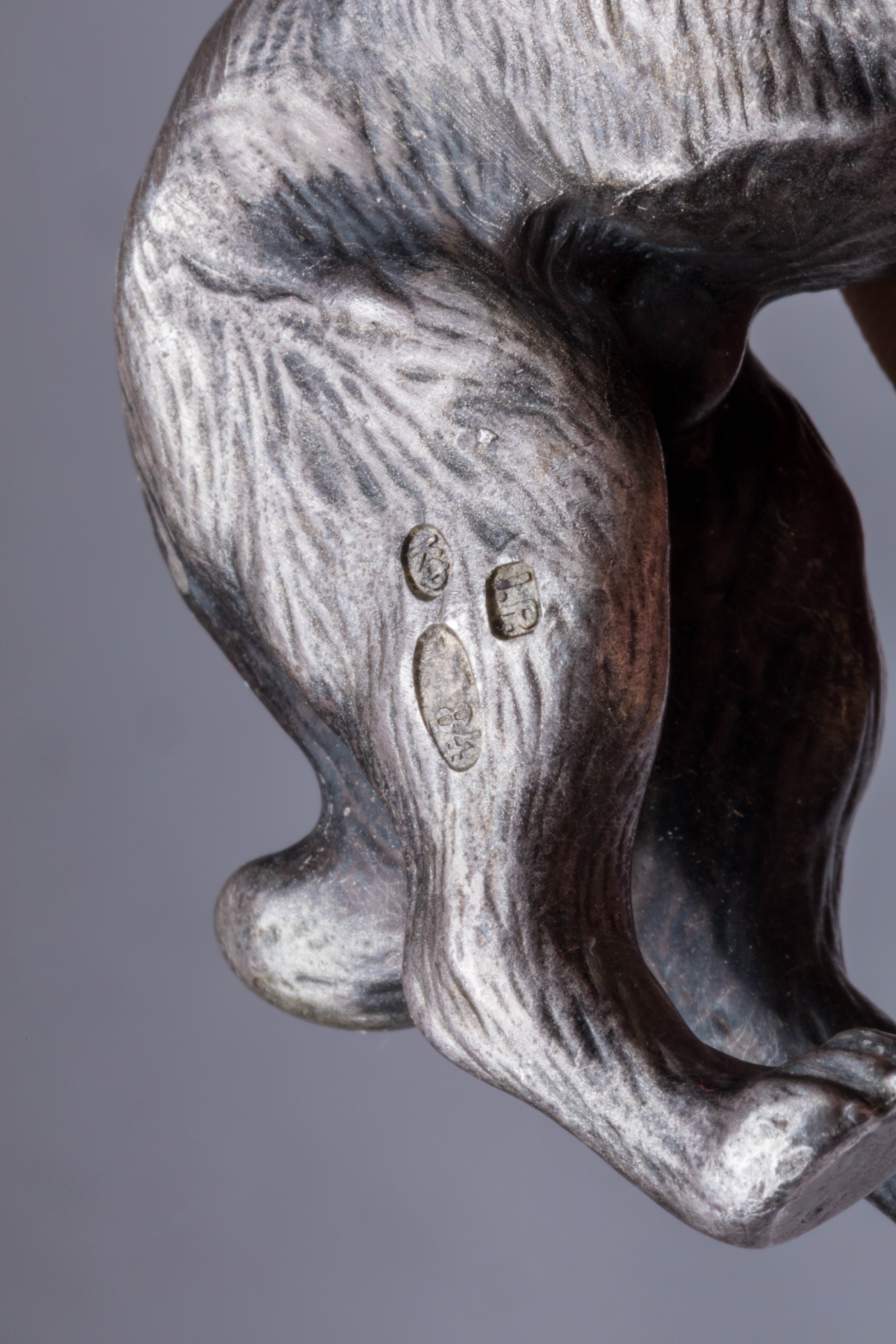 À côté du poinçon de Maître de Karl Fabergé (initiales KF) figure celui du Maître-orfèvre Julius Rappoport (1864-1916).
