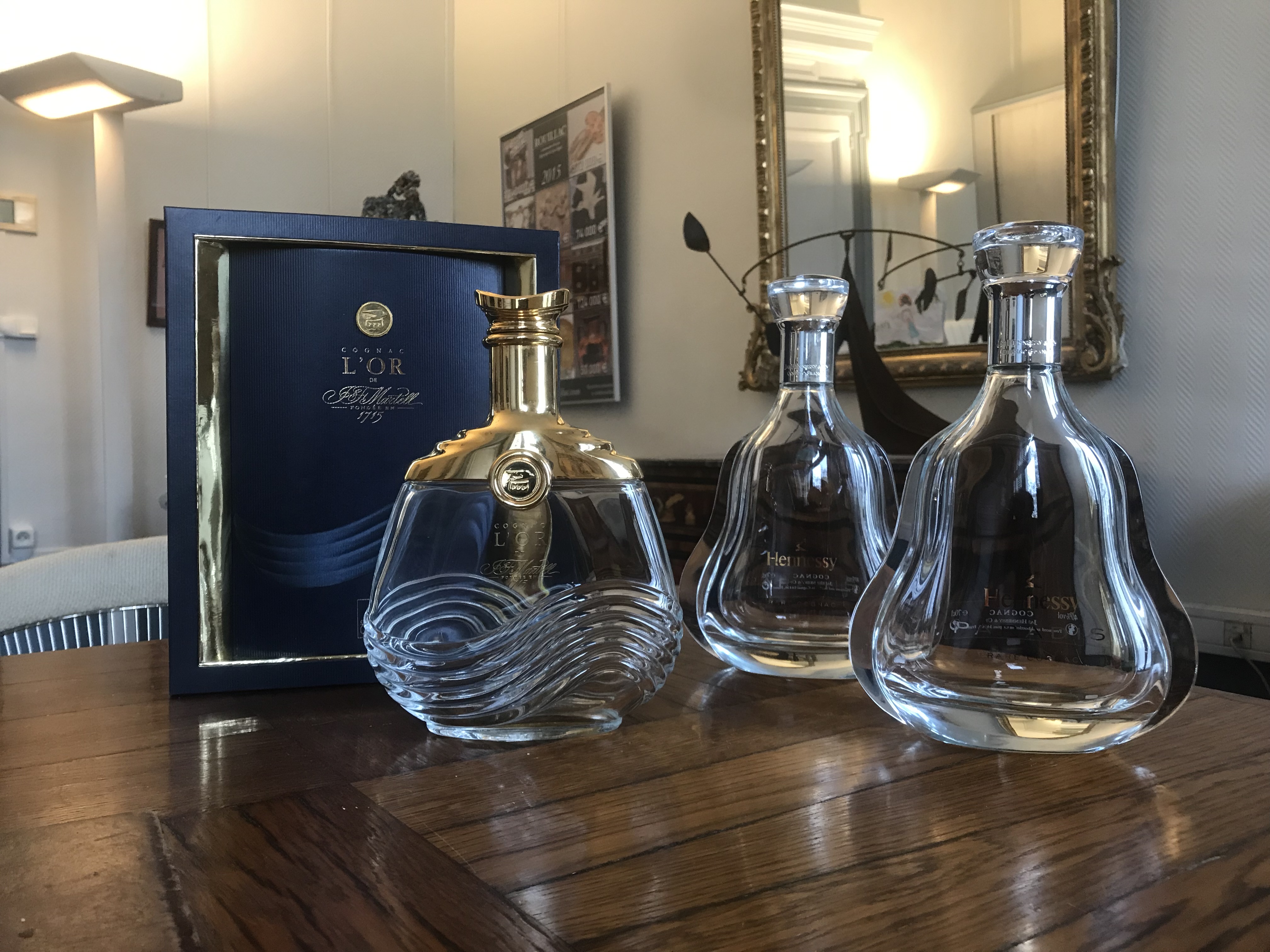 FLACON à COGNAC L'OR de la maison MARTELL avec son bouchon plaqué or 24 carat. Dans son écrin avec son livret.