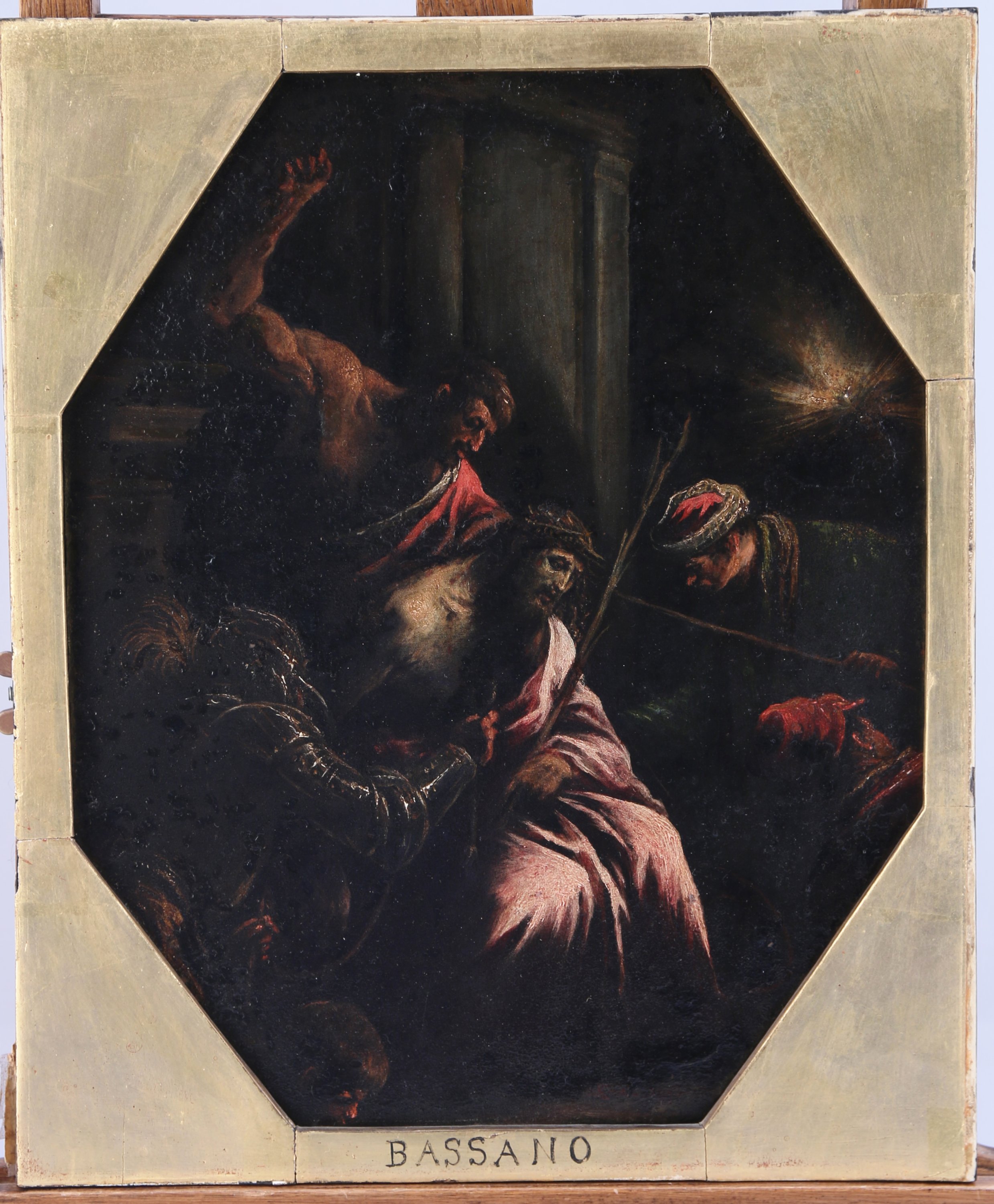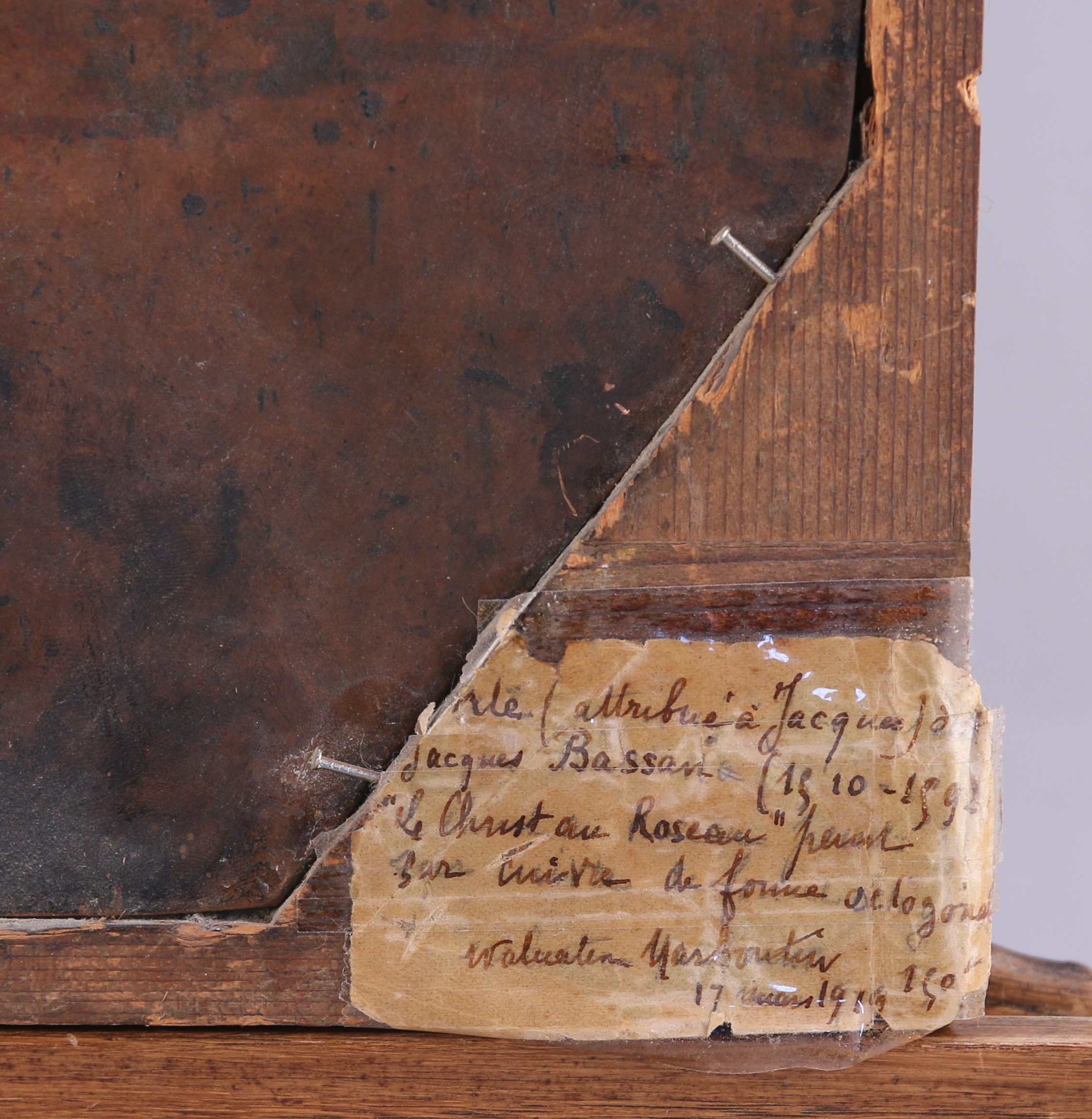 Provenance : collection particulière, Nantes. une étiquette précise au dos que ce cuivre octogonal du Christ au roseau attribué à Jacopo Bassano a été évalué 150 F le 19 mars 1919.