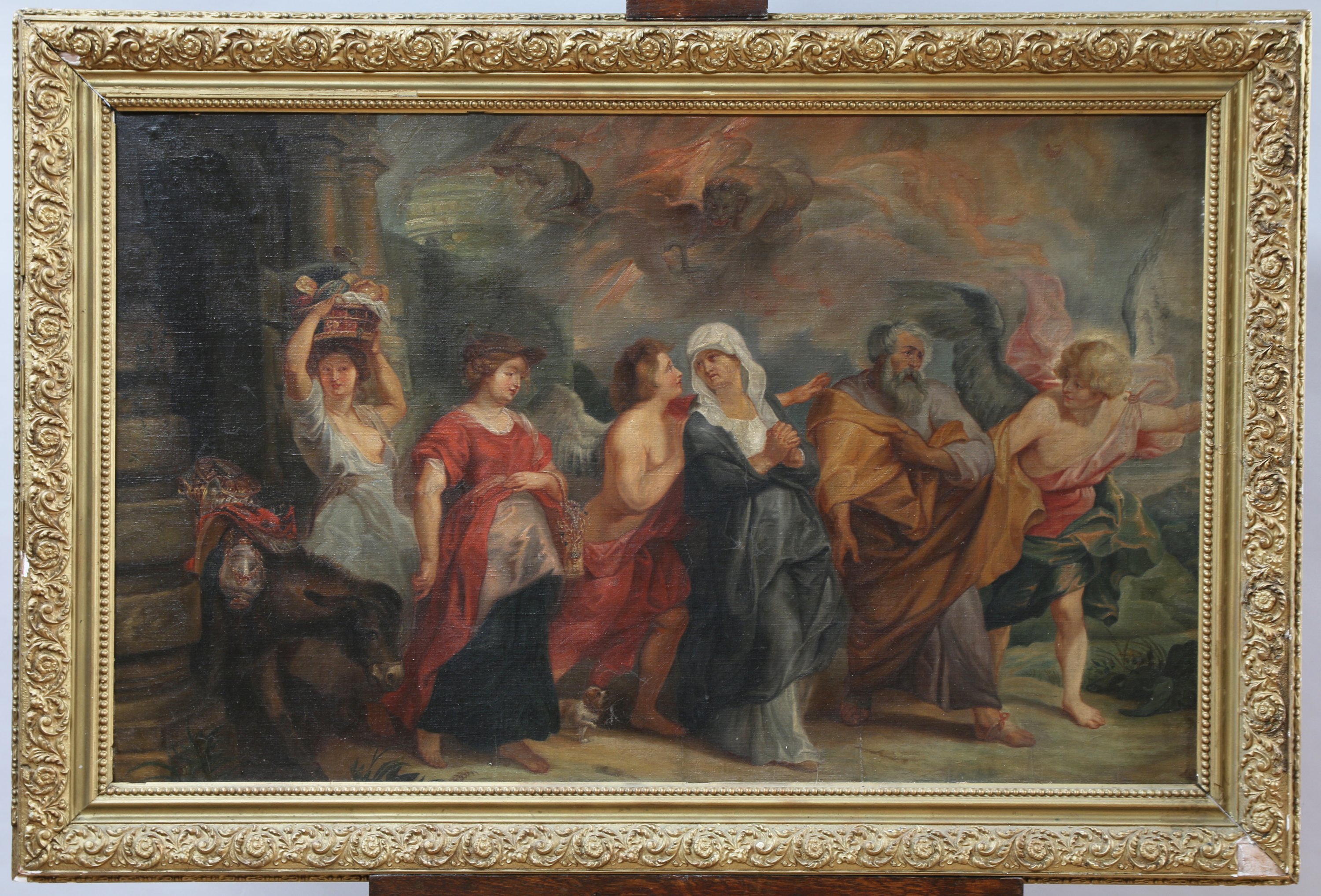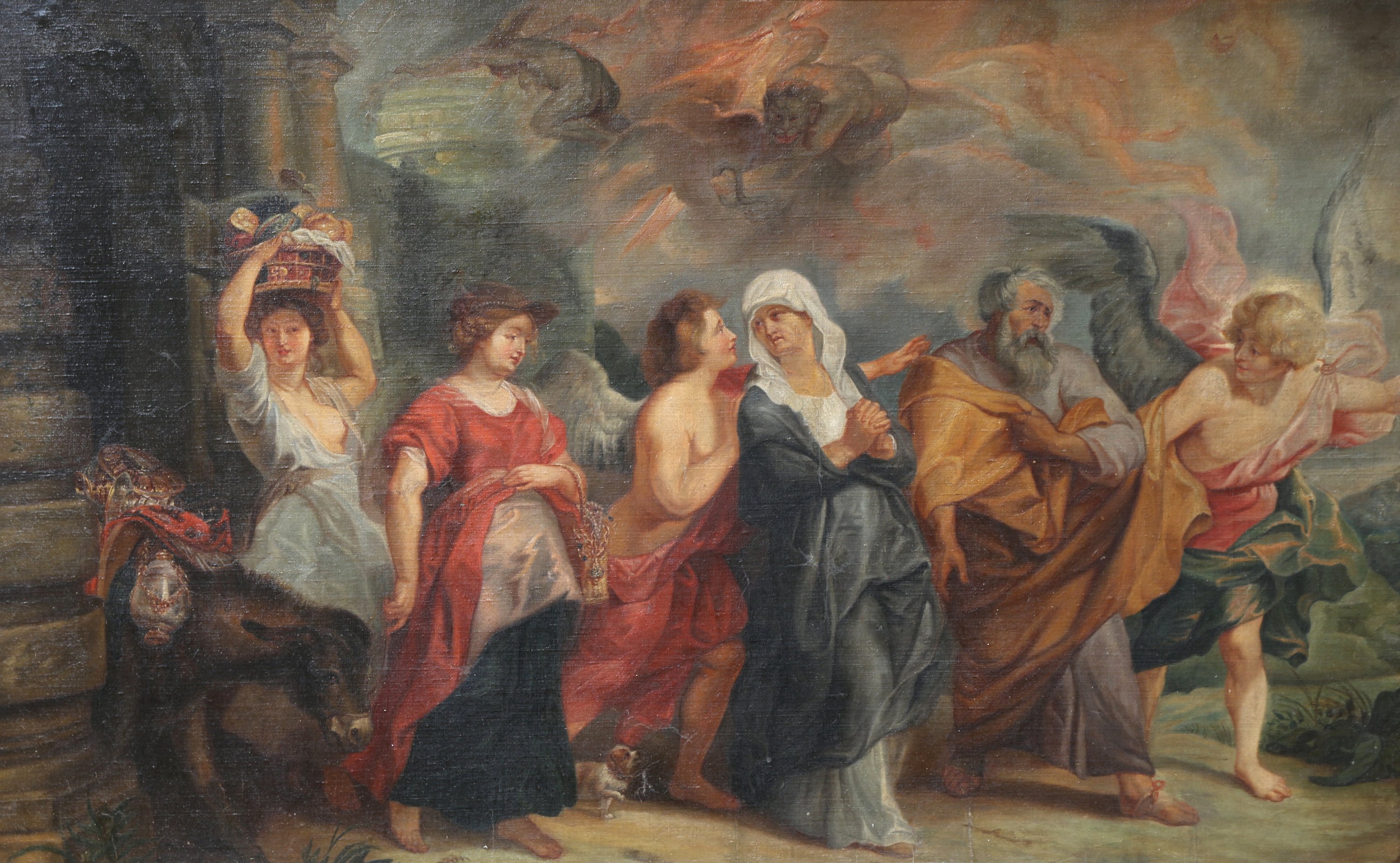 L'original de cette oeuvre figurant Loth et sa famille quittant Sodome, conduits par des anges, est conservé au musée du Louvre. En 1625, elle aurait été donnée par Rubens lui-même au Cardinal de Richelieu avant de figurer dans les collections de Louis XV. La copie la plus célèbre a été réalisée par Delacroix. Cette dernière est également conservée au Louvre.