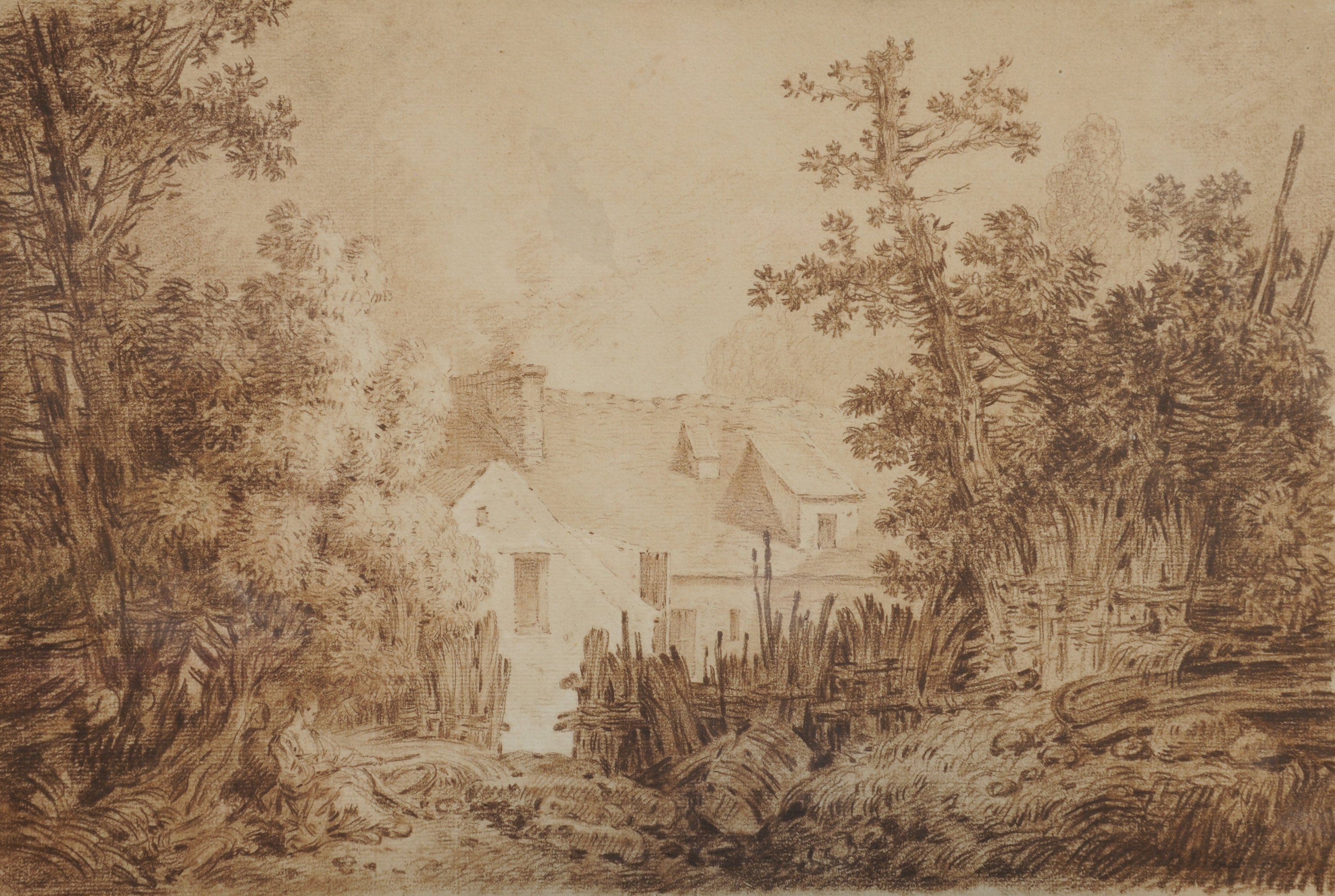 Pierre brune, estompe signée et datée en bas à droite "JB Huet 1775".