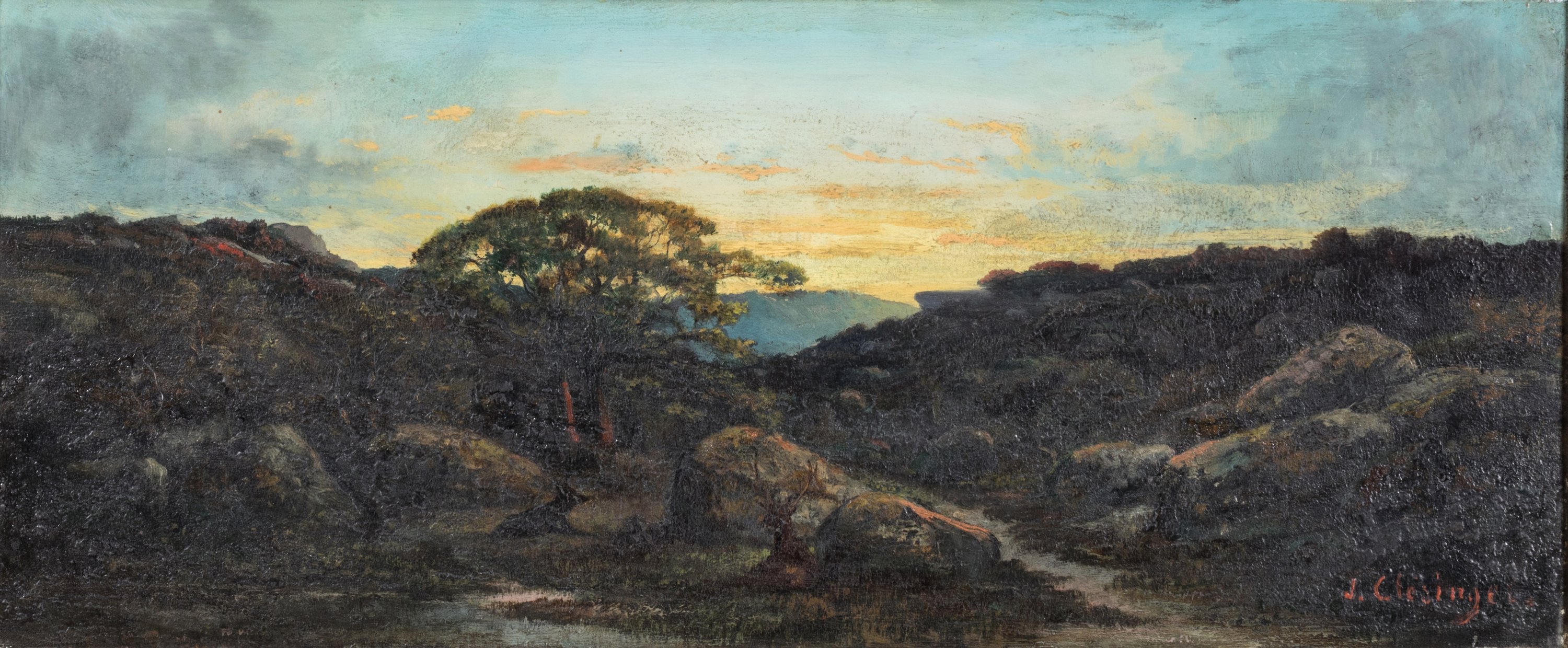 Jean-Baptiste Clésinger, dit Auguste Clésinger, se forme à la sculpture auprès de son père, Georges-Philippe Clésinger. Il se fait connaître au Salon de 1847 avec la Femme piquée par un serpent (Paris, musée d'Orsay). Il épouse la même année Solange, la fille de George Sand. Notre paysage s'inscrit parfaitement dans son œuvre peint, principalement des paysages de format allongé, où Clésinger se plaît à jouer avec les effets de lumière et l'atmosphère brumeuse des bois.