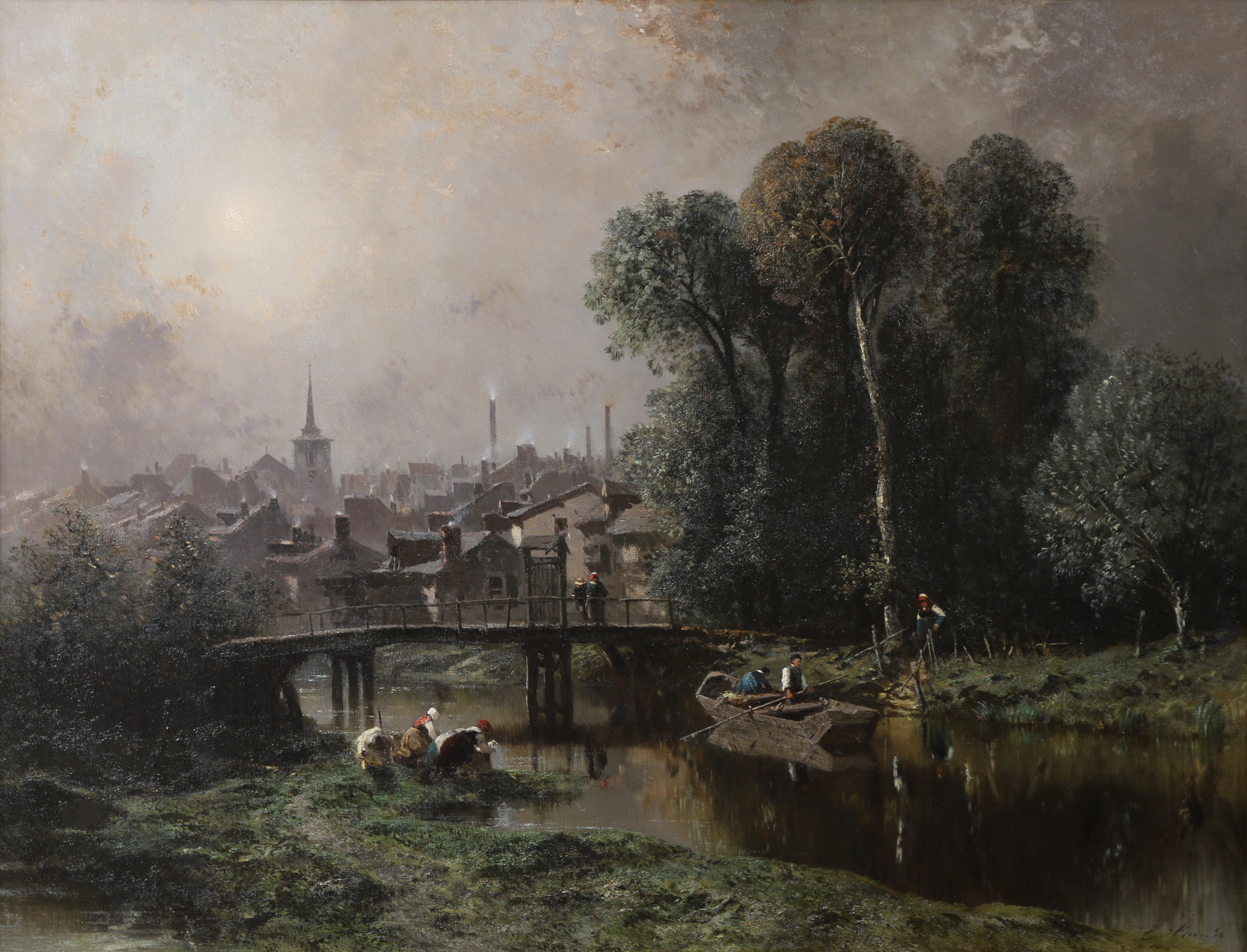 Généralement peintures de petits formats, ses grandes compostions telles celle-ci, sont rares et du plus bel effet.