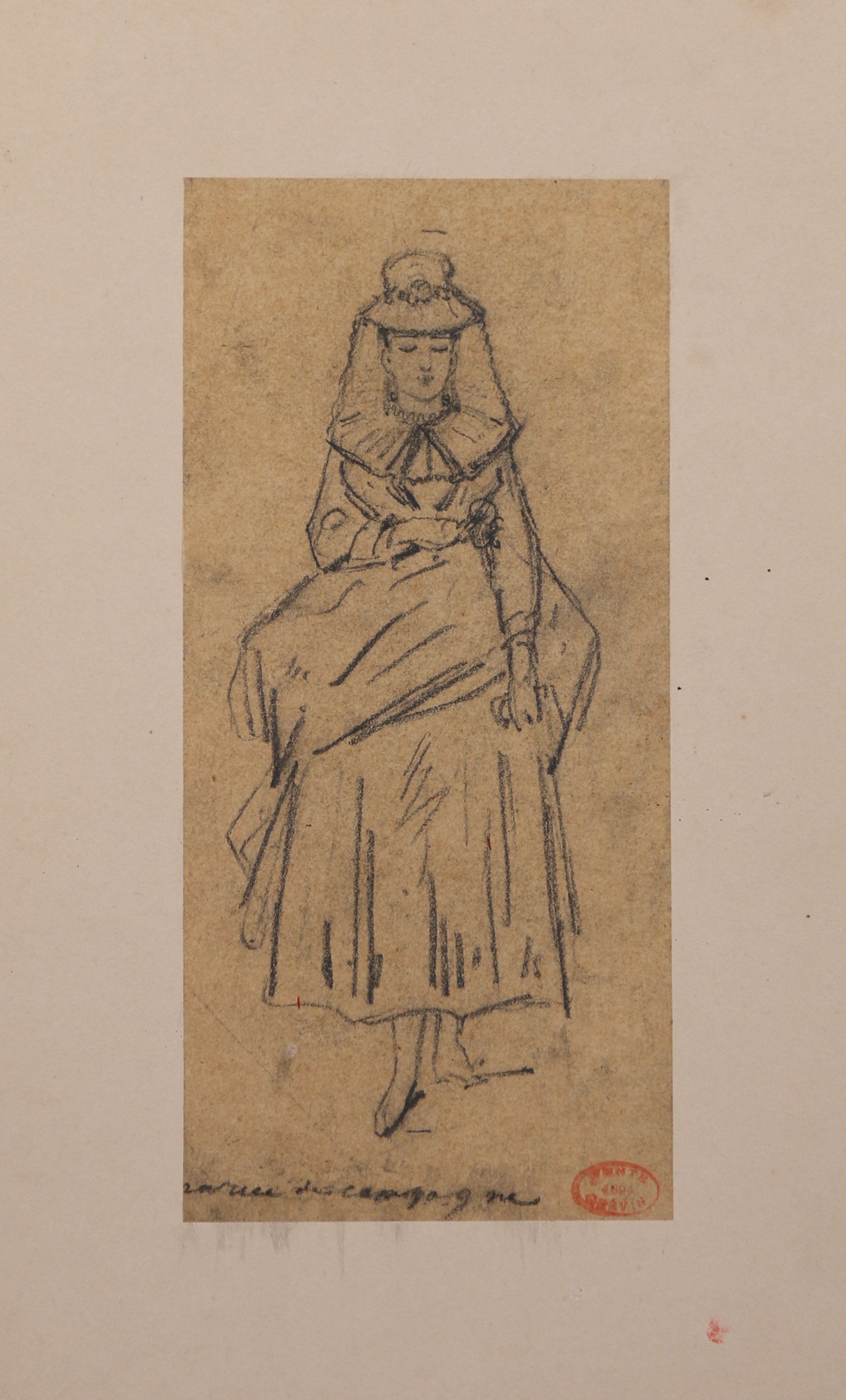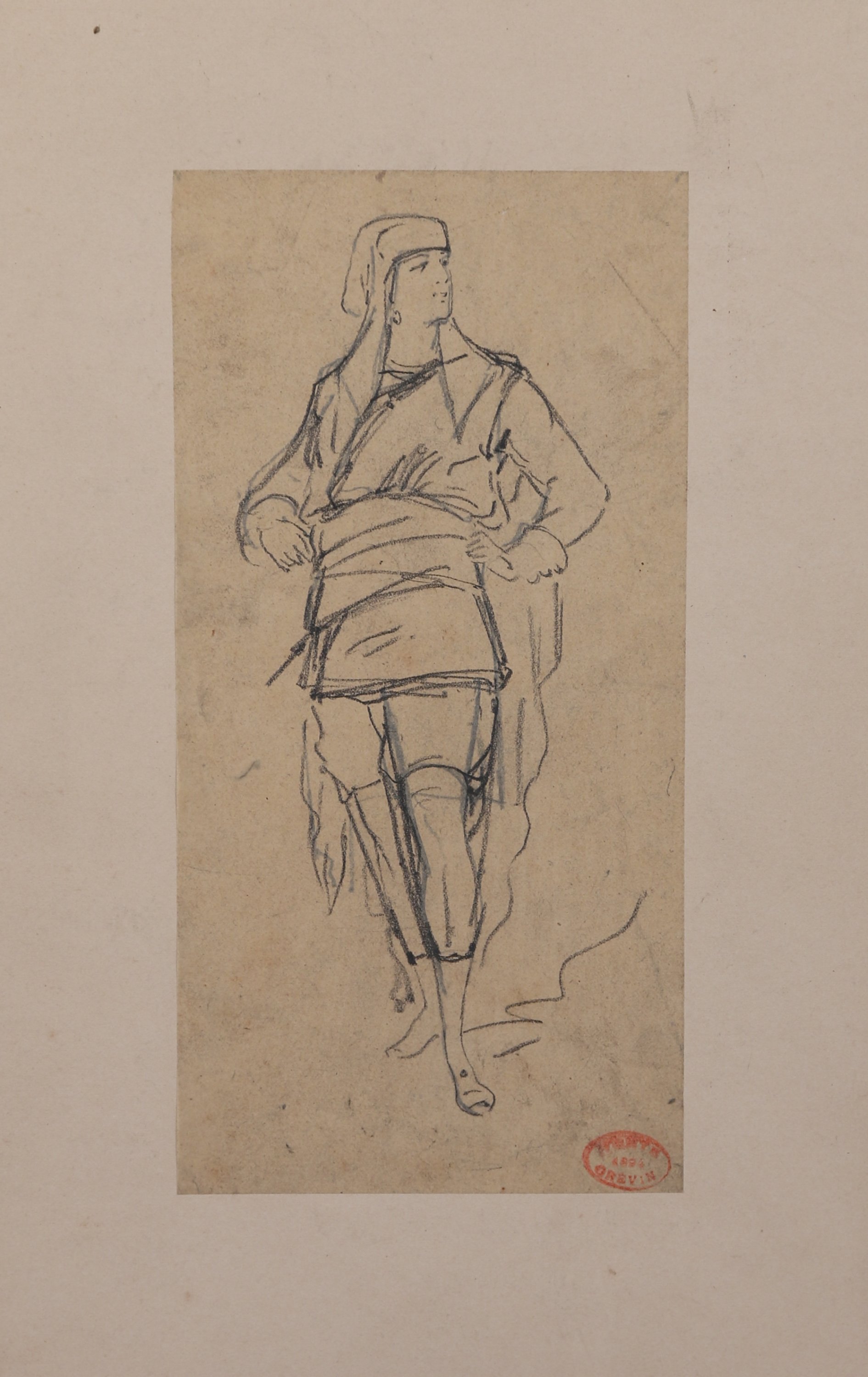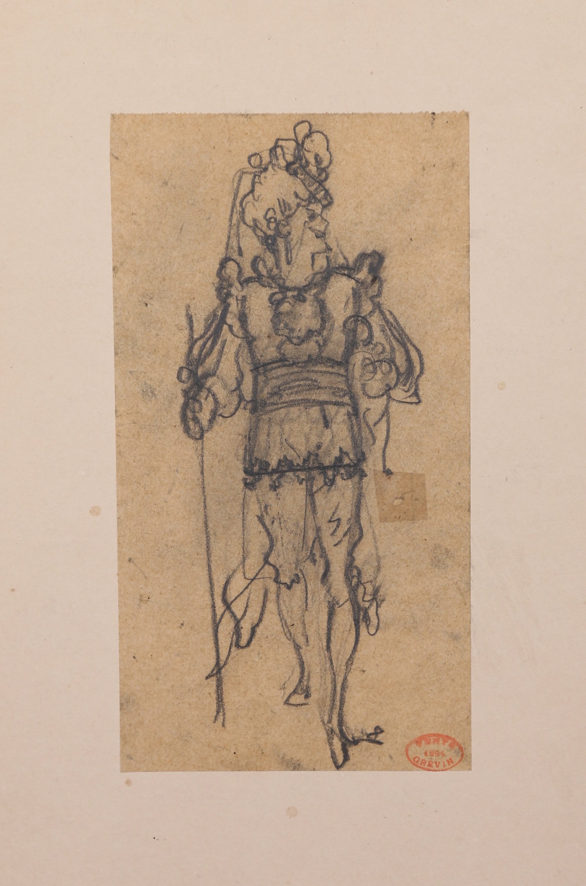 Sculpteur, caricaturiste, dessinateur et créateur de costumes de théâtre français, Alfred Grévin entre dans l'histoire en fondant le musée de cire qui porte son nom sur le boulevard Montmartre à Paris. La vente après décès de son fonds d'atelier dure deux jours à l'hôtel Drouot, les 12 et 13 juin 1894. Ses dessins et croquis pour le théatre sont vendus par lots (n°37 à 72), de même que ceux à destination des ballets (n°73 à 110).