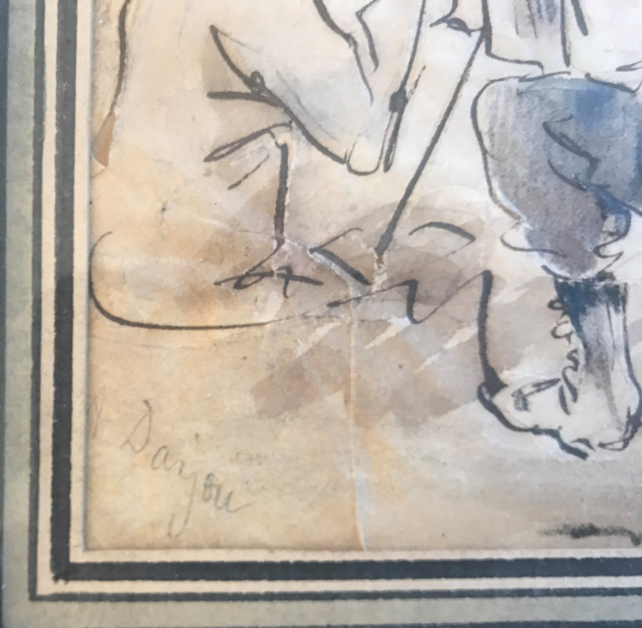 Dessin à la plume réhaussé à l'aquarelle, lavis, crayons gras et fusain.