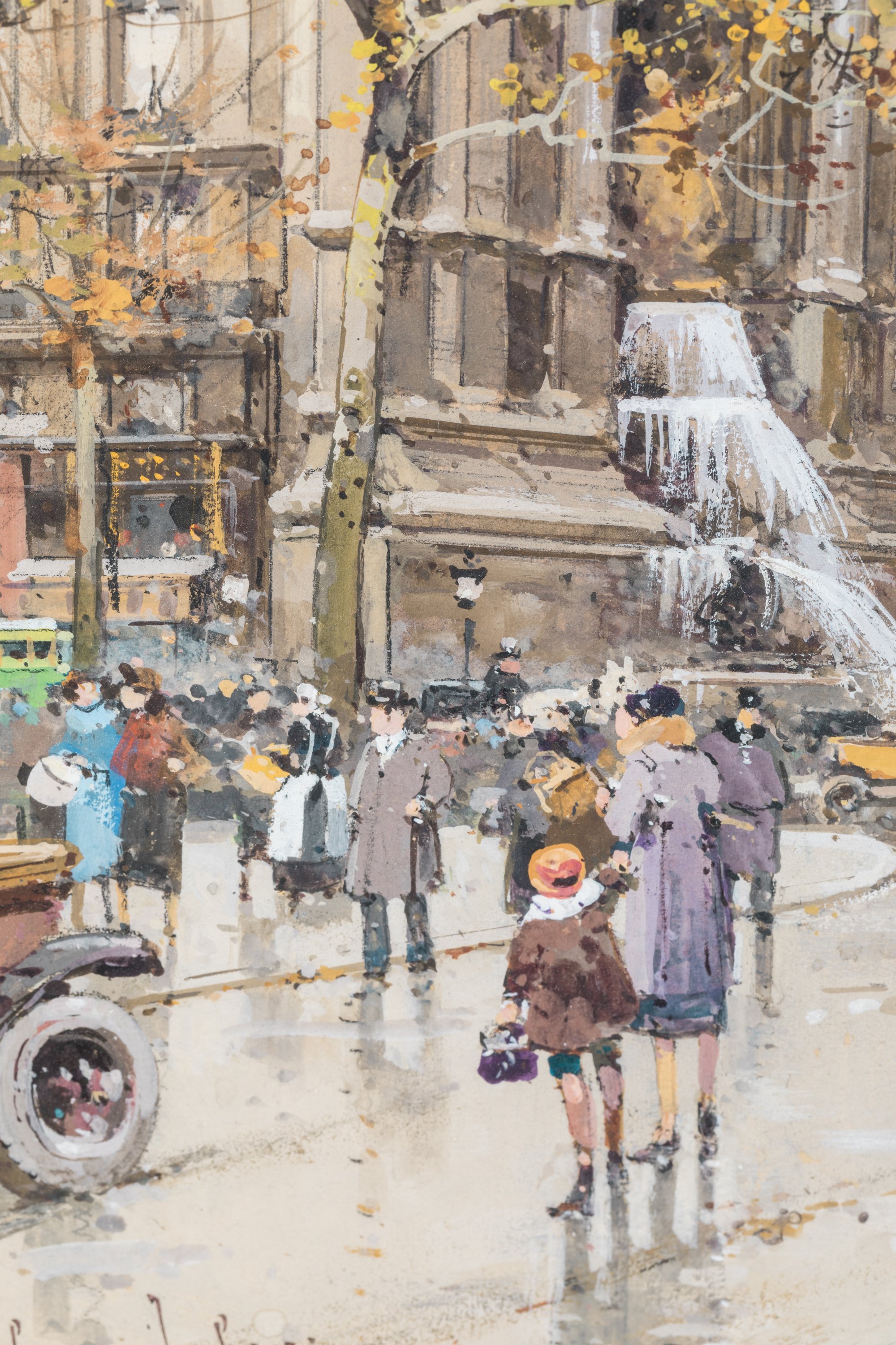 Eugène GALIEN-LALOUE. Paris, la place Saint-Michel. Watercolour and gouache signed lower left.