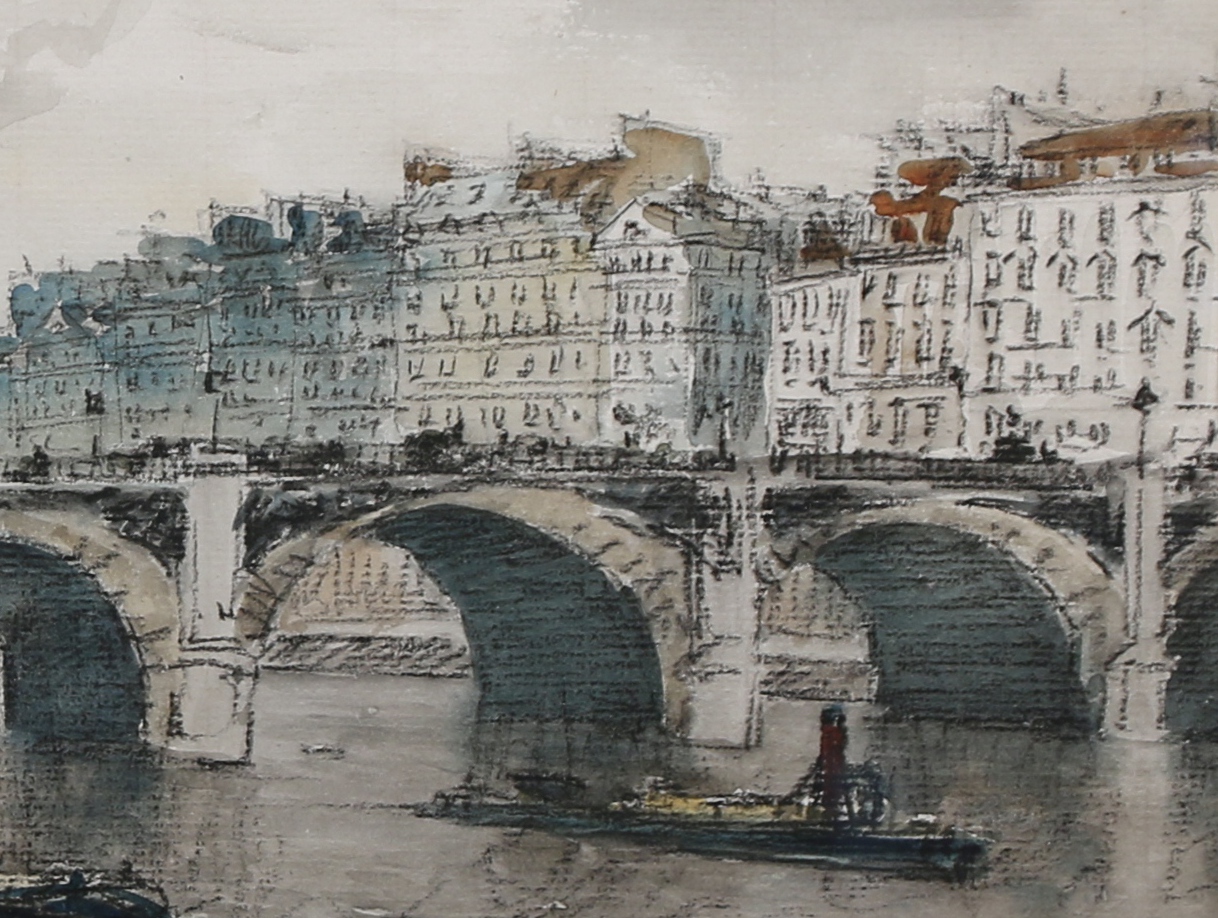 Fusain et aquarelle signé, situé et daté 1904 en bas à guauche.