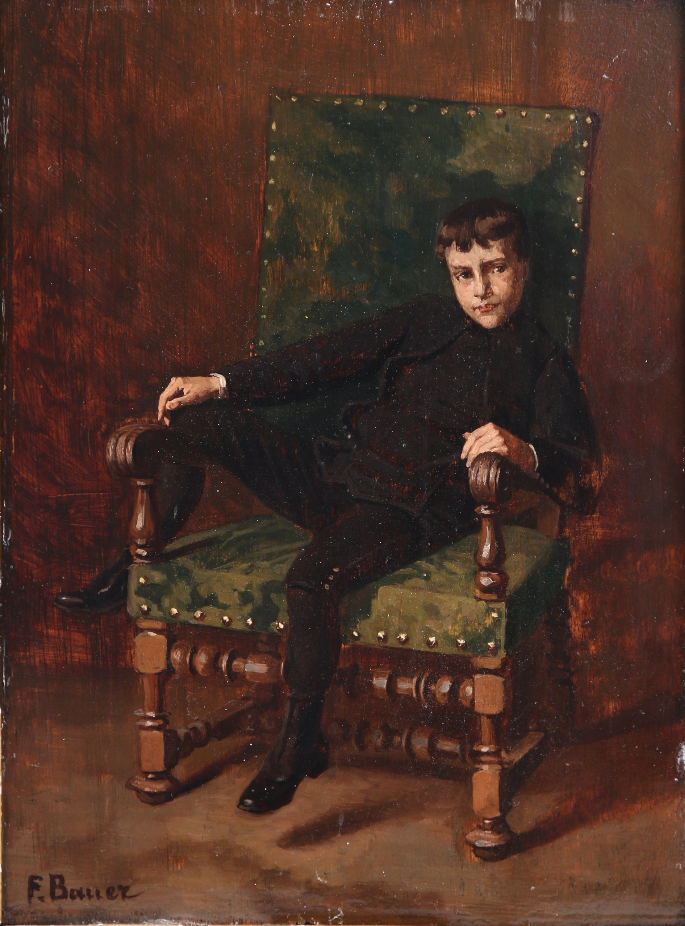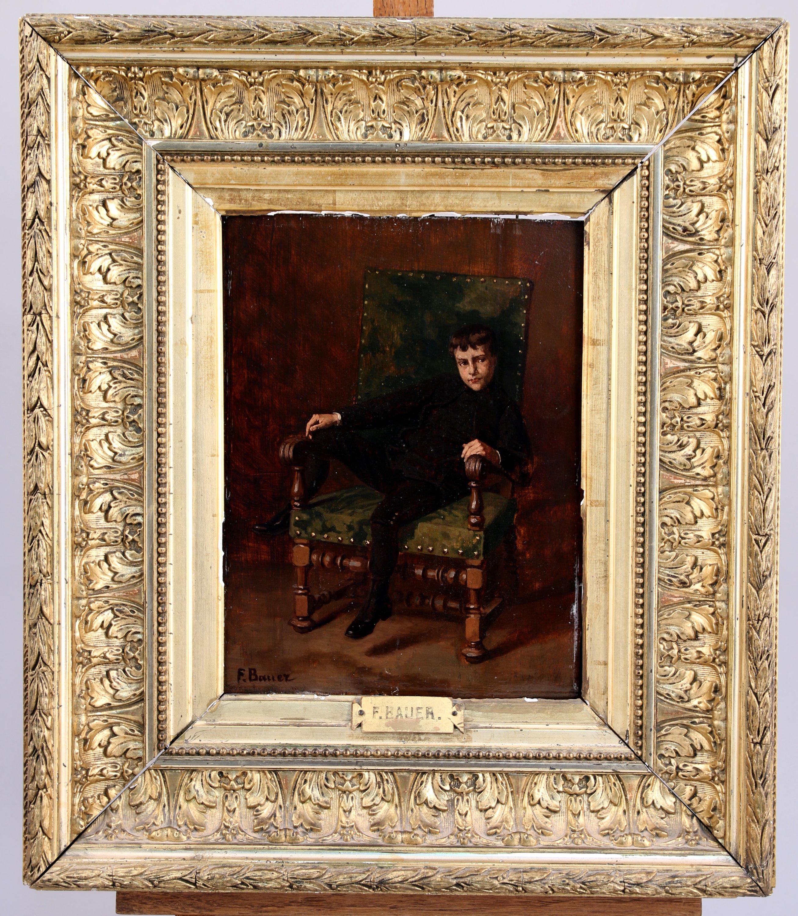 Peintre d'histoire lyonnais, Auguste Félix Bauer produit une oeuvre que l'on peut qualifier de troubadour. Un de ses chefs-d'oeuvre, "La leçon d'enluminure", 1892, est conservé au Musée de L'Oise à Beauvais.