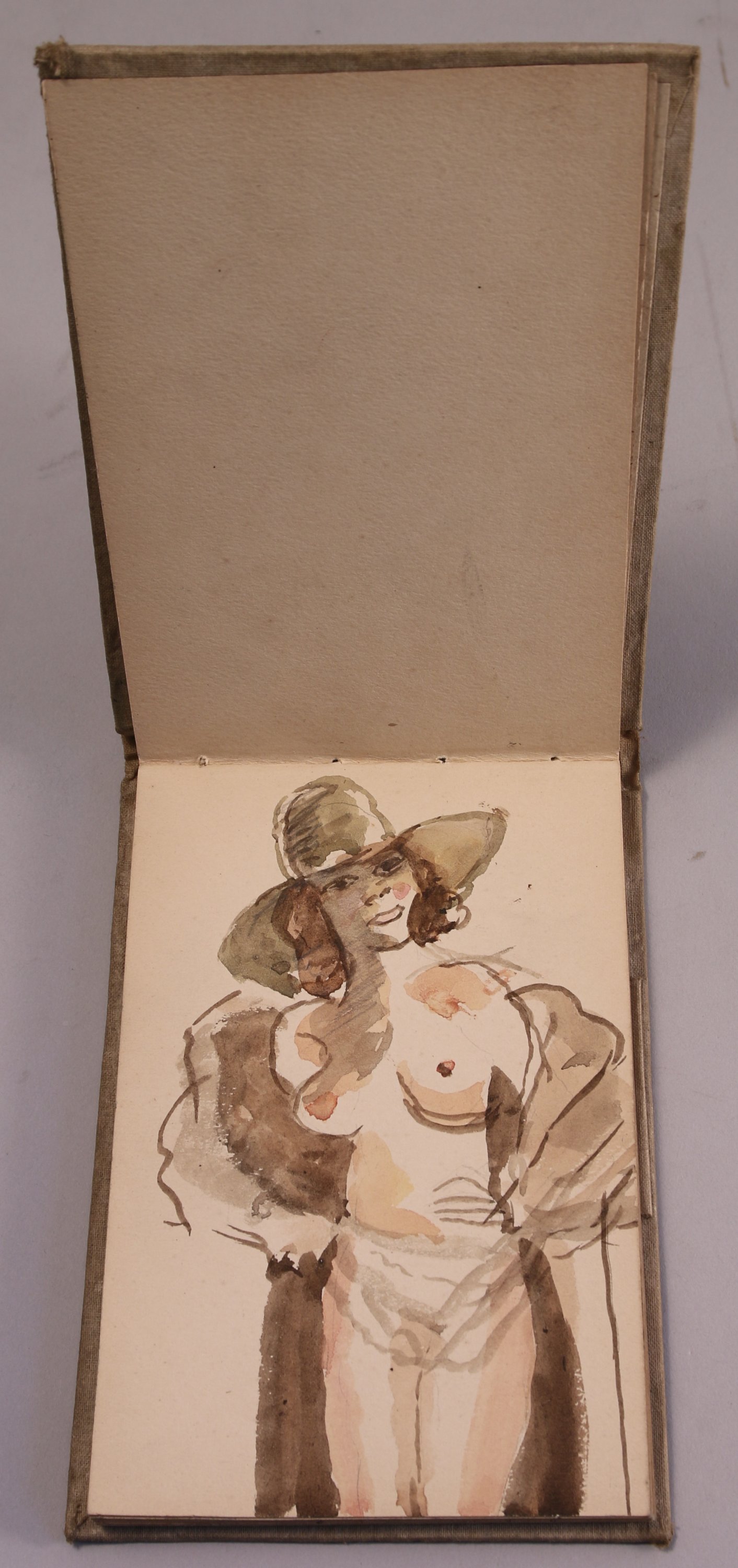 5 CARNETS DE NOTES avec deux aquarelles, dont un nu féminin dans l'un; plusieurs FEUILLES VOLANTES avec notes; CARTE DE VISITE, 3 PHOTOGRAPHIES de l'artiste; CARTON D'INVITATION à l'exposition blésoise de 1959; PLAQUETTE des tapisseries de Beauvais présentées à l'exposition des Galeries Lafayettes en 1933; DIPLÔME, médaille d'or de l'exposition des arts décoratifs de 1925; NOMINATION d'Officier d'Instruction publique de 1953; une GRAVURE; Sim, "le Tango", ALBUM, Sim, Tengoville sur mer, ALBUM; le CRAPOUILLOT, Noël 1926; GAZETTE DROUOT du 5 mai 1928; CATALOGUE de l'exposition Van Gogh de 1937; livre : MOURLE, de Gustave Kahm; LITHOGRAPHIE de la cathédrale de Strasbourg; LITHOGRAPHIE figurant un homme marchand; LITHOGRAPHIE Stébelska "les nouvelles de Verdun"; Henri RAMEY, Nu, lithographie signée en bas à droite et justifiée 20/75; portrait d'homme de profil, DESSIN signé Bria (?) et daté 28/5/39; homme au chapeau melon, DESSIN cubiste monogrammé SE; CARICATURE, homme au vélo, gouache; 2 SOUS-TASSES : l'une marquée "Tafine courant la prétrentaine nous nous sommes réfugiés au temple de l'art divin" un ange dessiné au centre; l'autre : A Rij-Rousseau loiseau mouche merci c'était délicieux" un visage dessiné au centre.