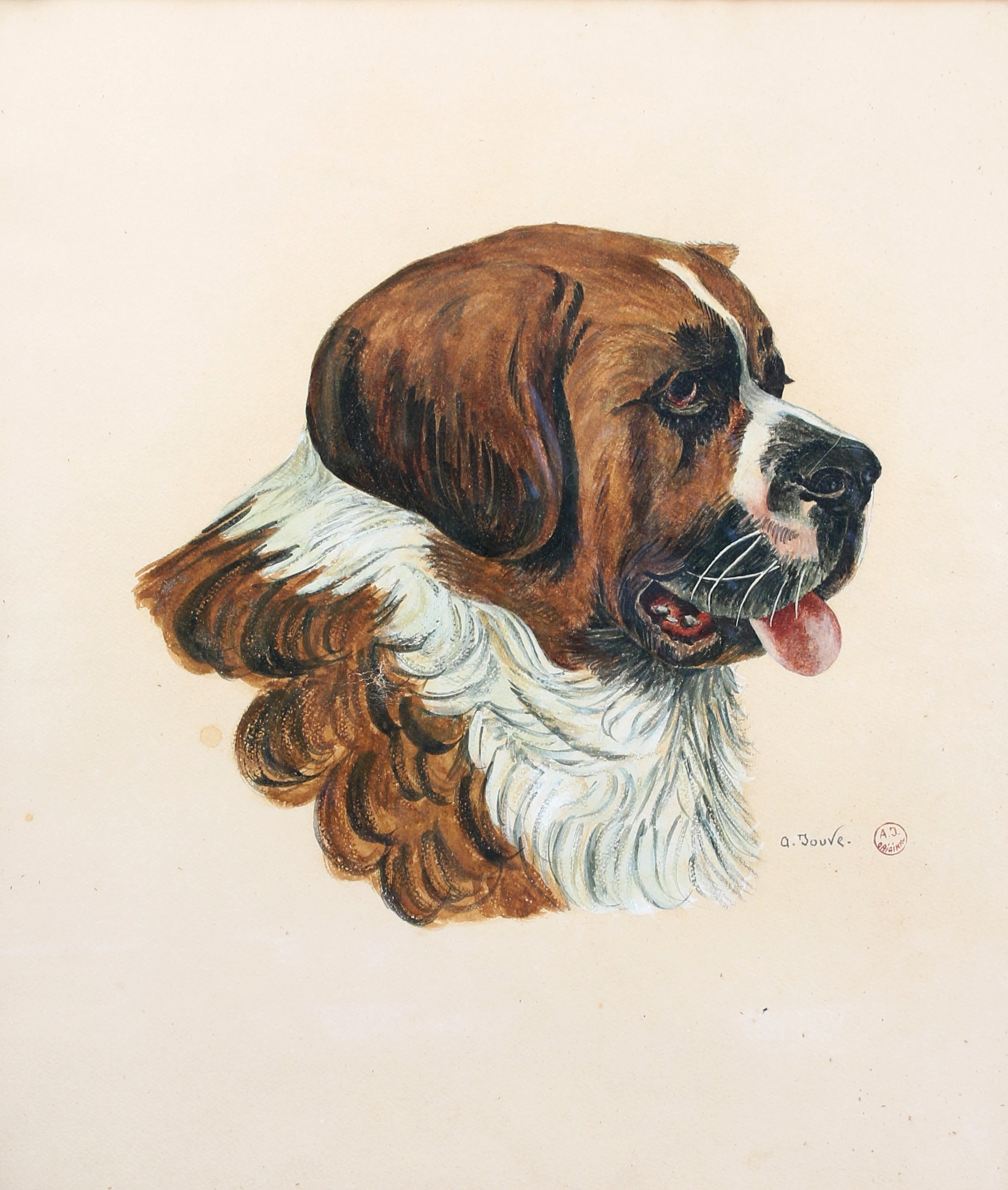 JOINT : Saint-Bernard attribué à Auguste Jouve (1854-1936), Huile sur papier signée et portant le même monogramme en rouge. Haut. 43 Larg. 37 cm.