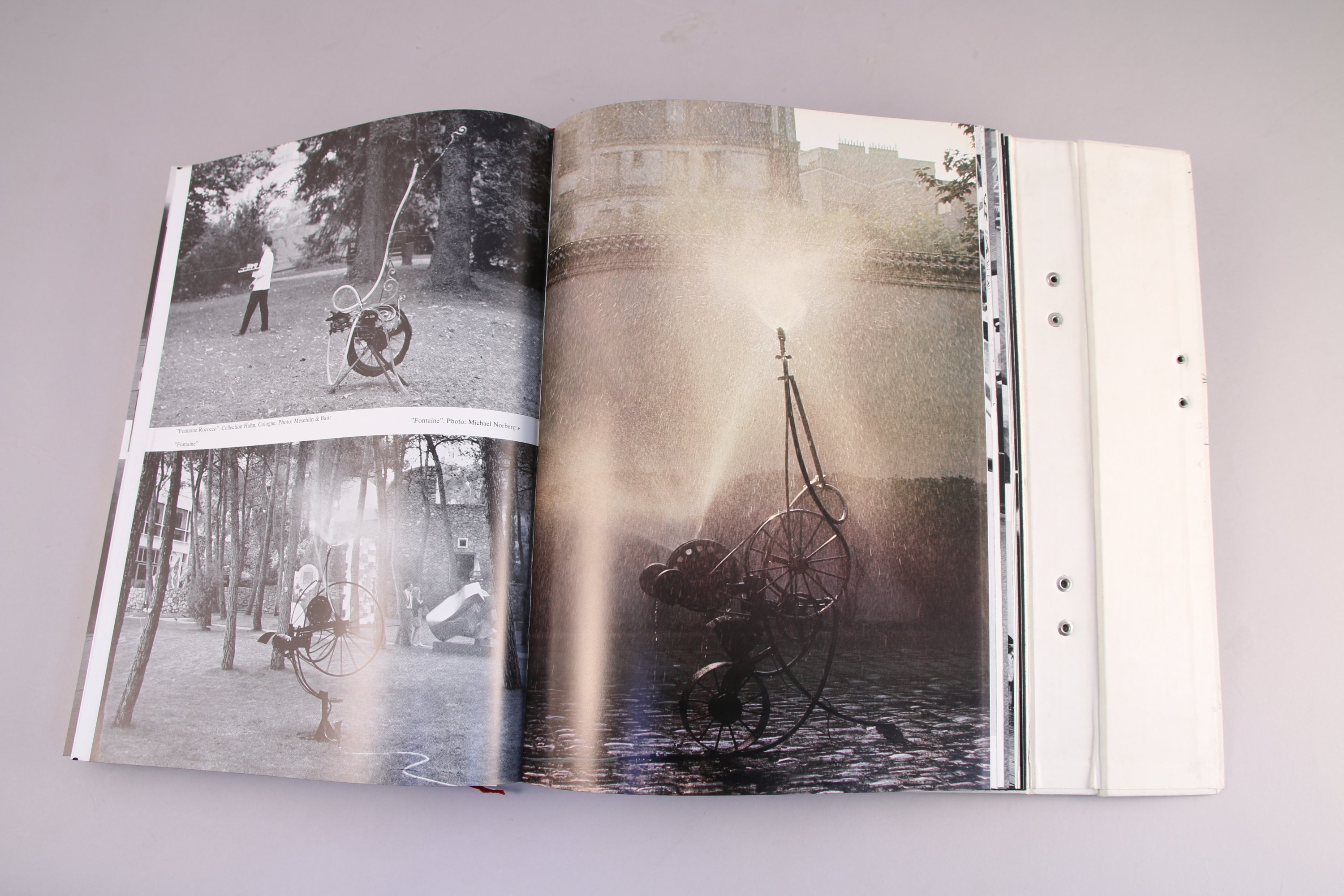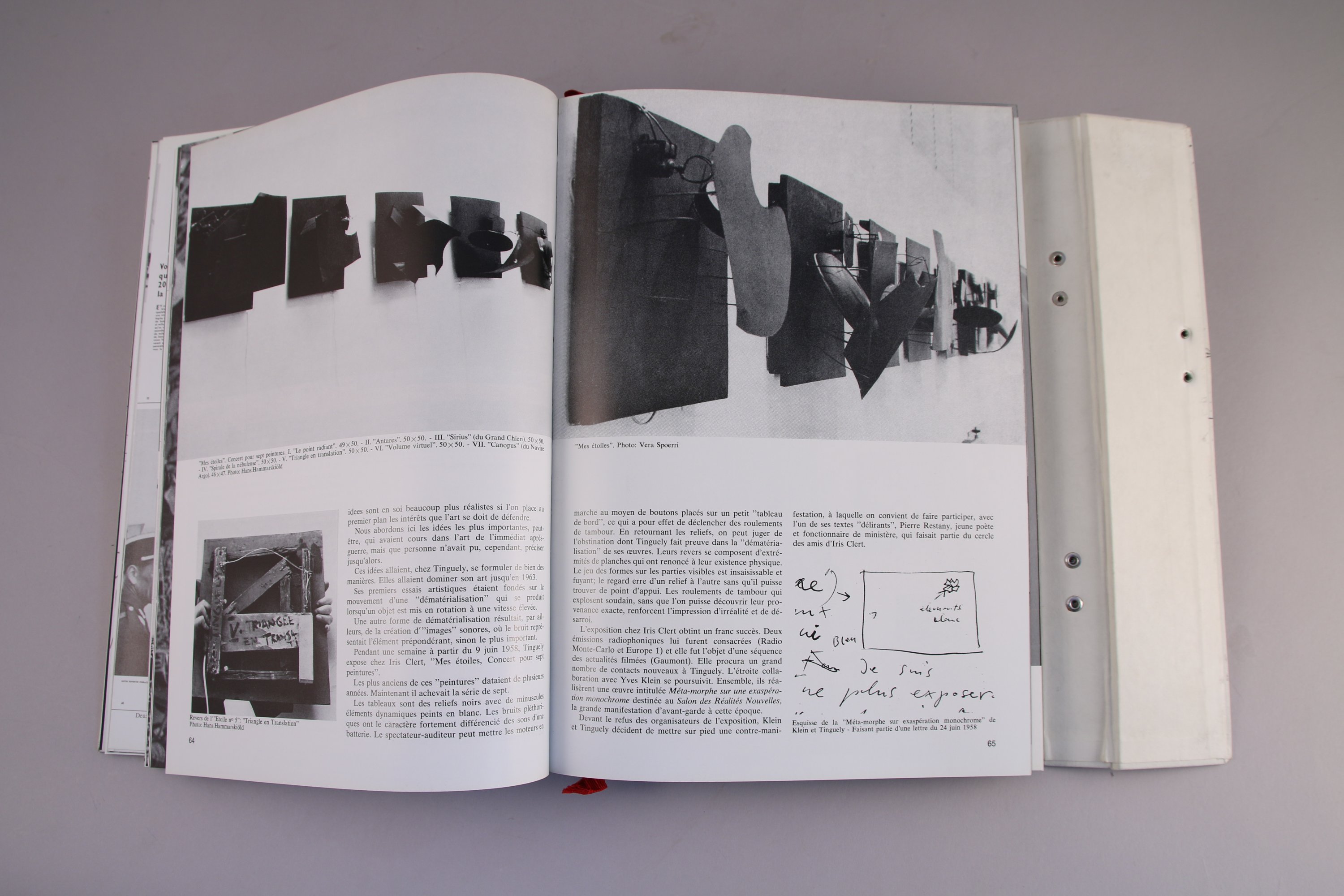 LIVRE en VALISE avec un dessin signé "Tinguely" et légendé au dos : "peinture exécutée avec "metamatic n°8" de Tinguely" le 8 mai 1974 à Stockholm. Exemplaire complet du 33 tours "Sounds belongings to Pontus Hultén's book on Jean Tinguely's work, Méta". Édité par Pierre Horay, Paris 1973, in-4°, p. 364.