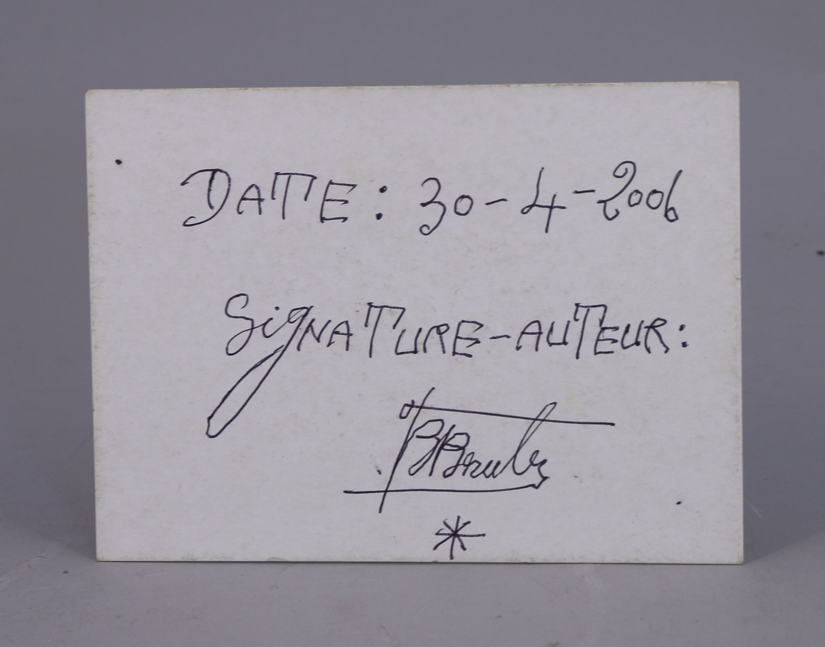 Trois dessins au stylo et crayons de couleur sur papier cartonné. Signés "FBBruly" et datés au dos.