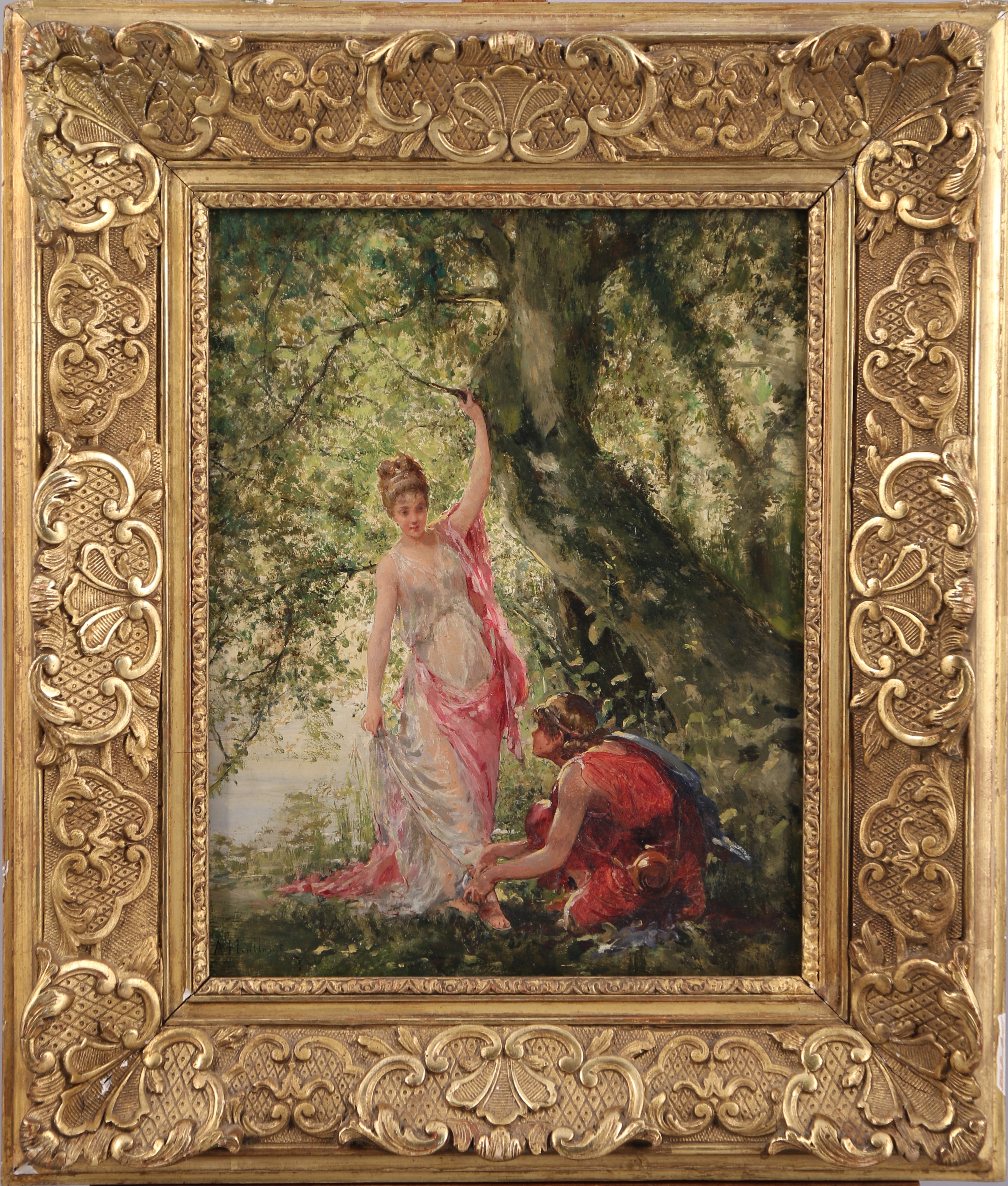 Félix Armand HEULLANT (1834-?)La patricienne et le chevrier.Panneau signé en...