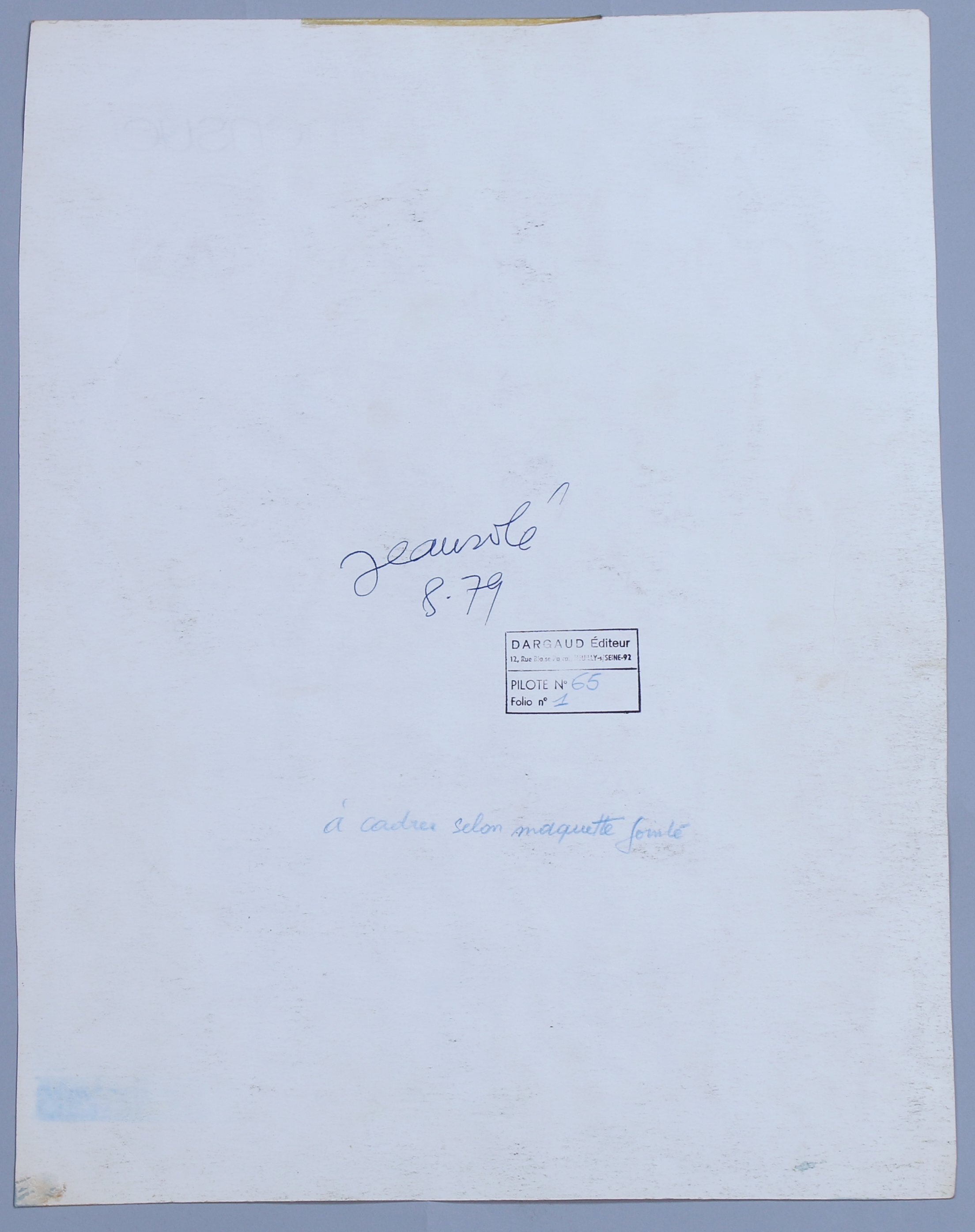 Signé au dos avec le tampon "DARGAUD Éditeur Pilote N°65 Folio n°1"