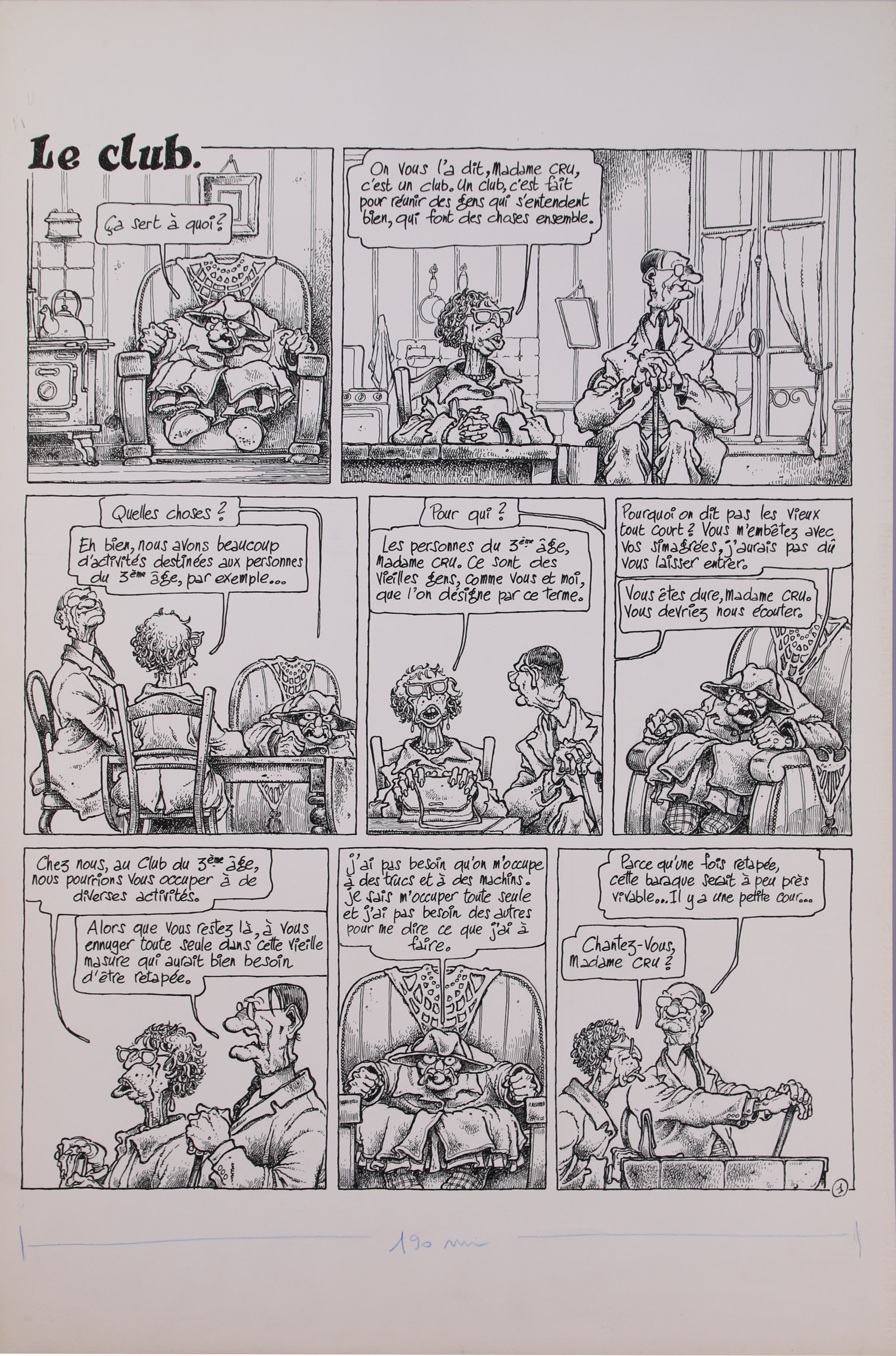 1ère planche de l'histoire (5 planches au total) publiée dans le magazine Fluide Glacial et dans l'album n°1 " Rencontre du 3e âge " en 1984.