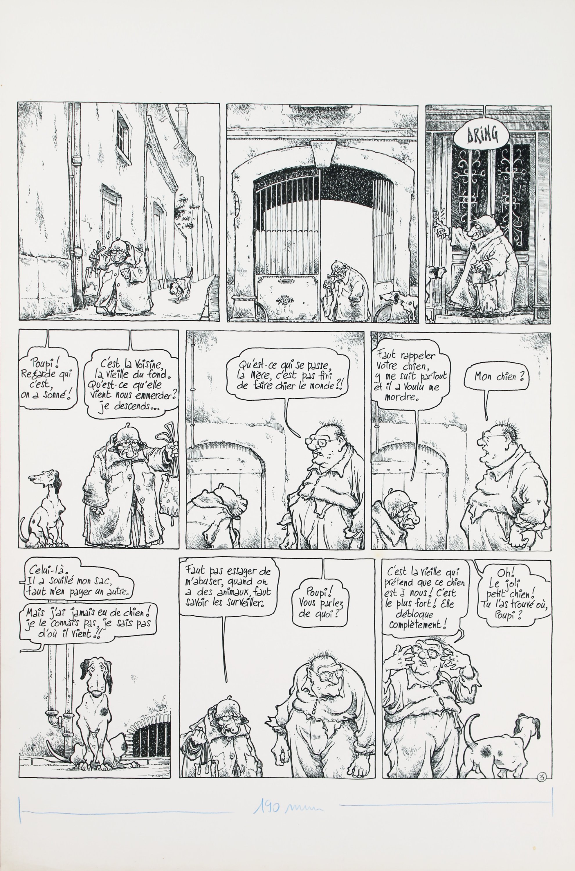 3ème planche de l'histoire (5 planches au total) publiée dans le magazine Fluide Glacial et dans l'album n°2 " La dame de fer " en 1985.