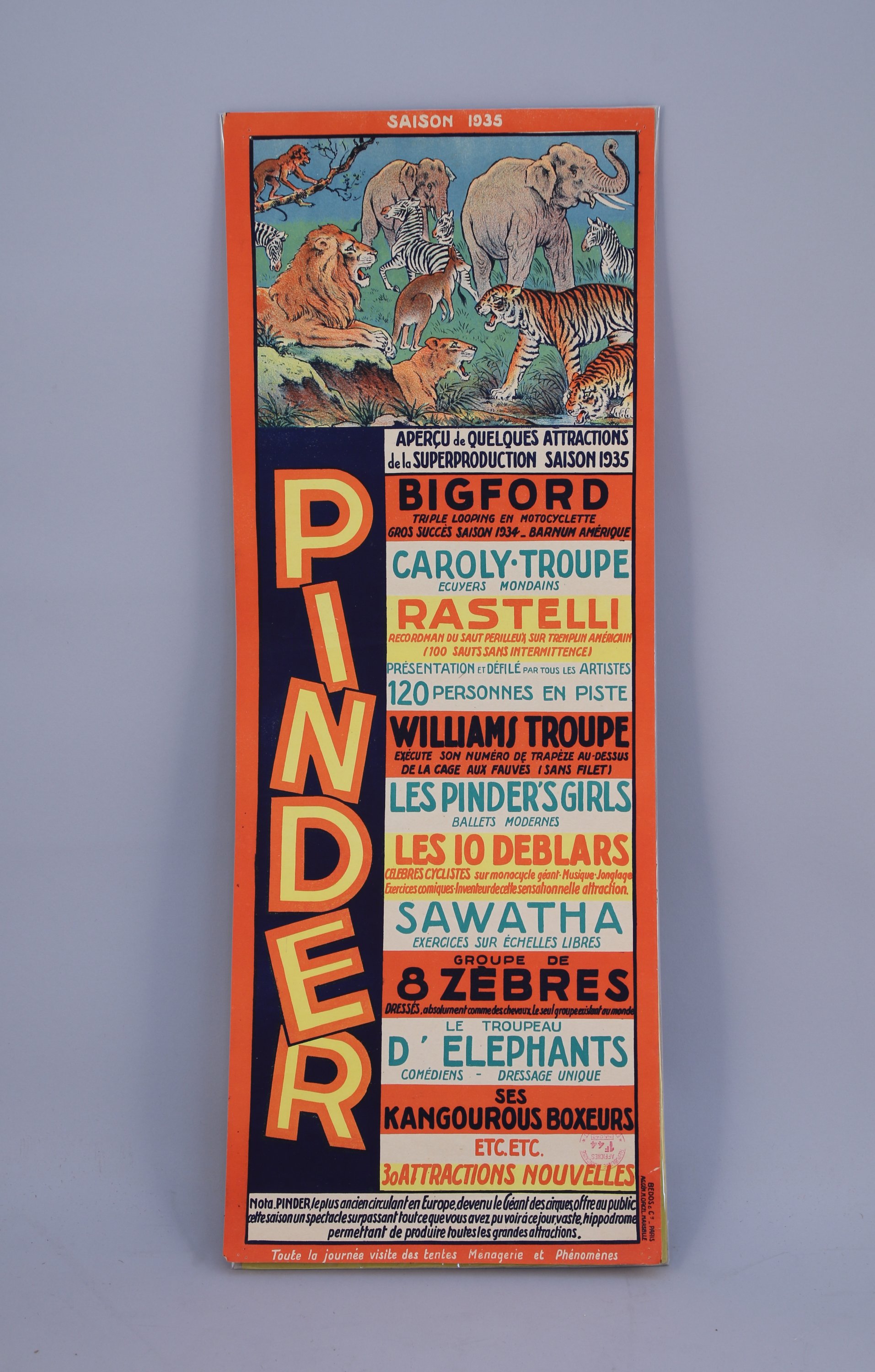 Programmes en rapport avec le cirque et les activités vélocipédiques datant pour la plupart du milieu des années 1930.