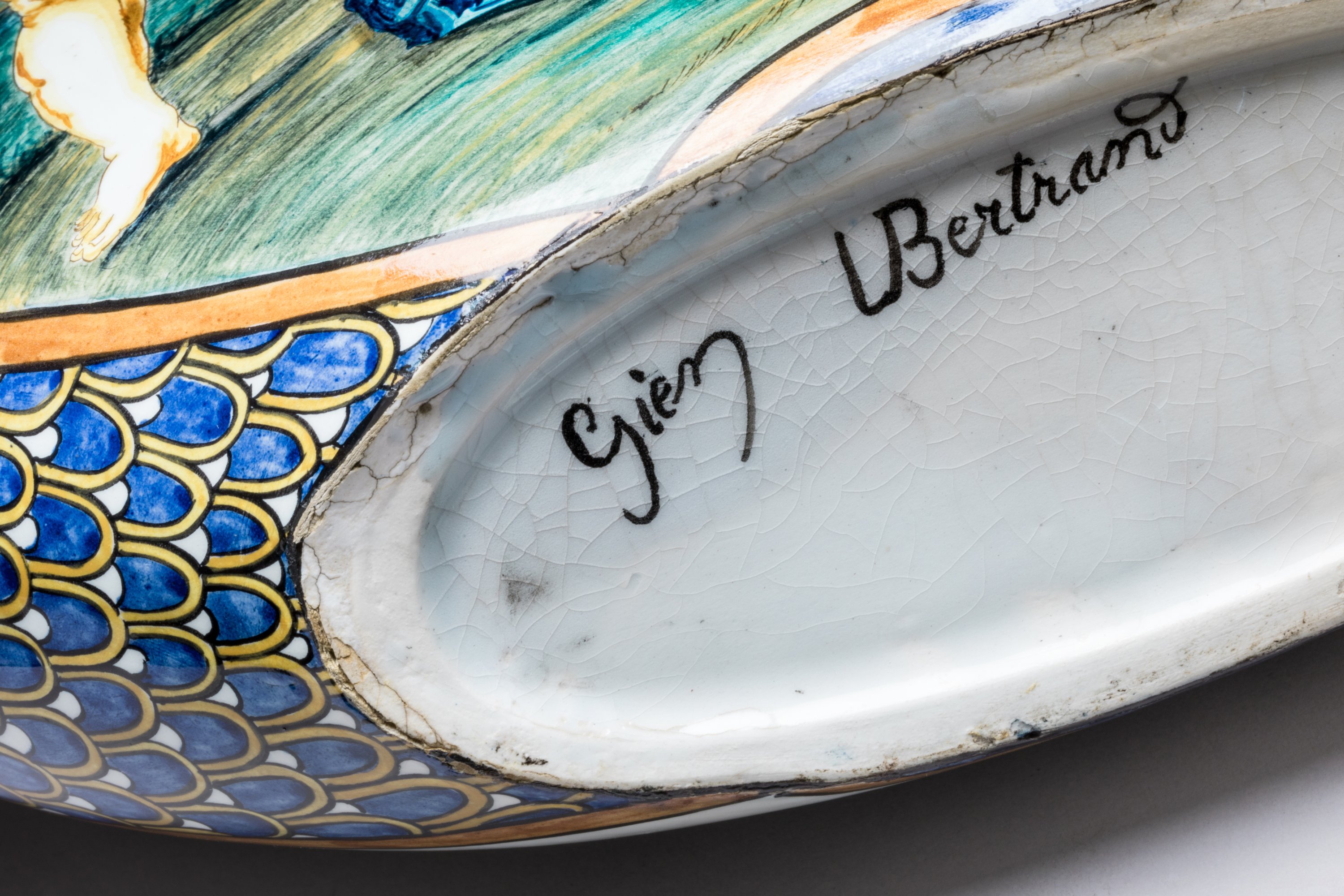 Marque olographe de Gien et signature dUlysse Bertrand au revers. Pièce unique.