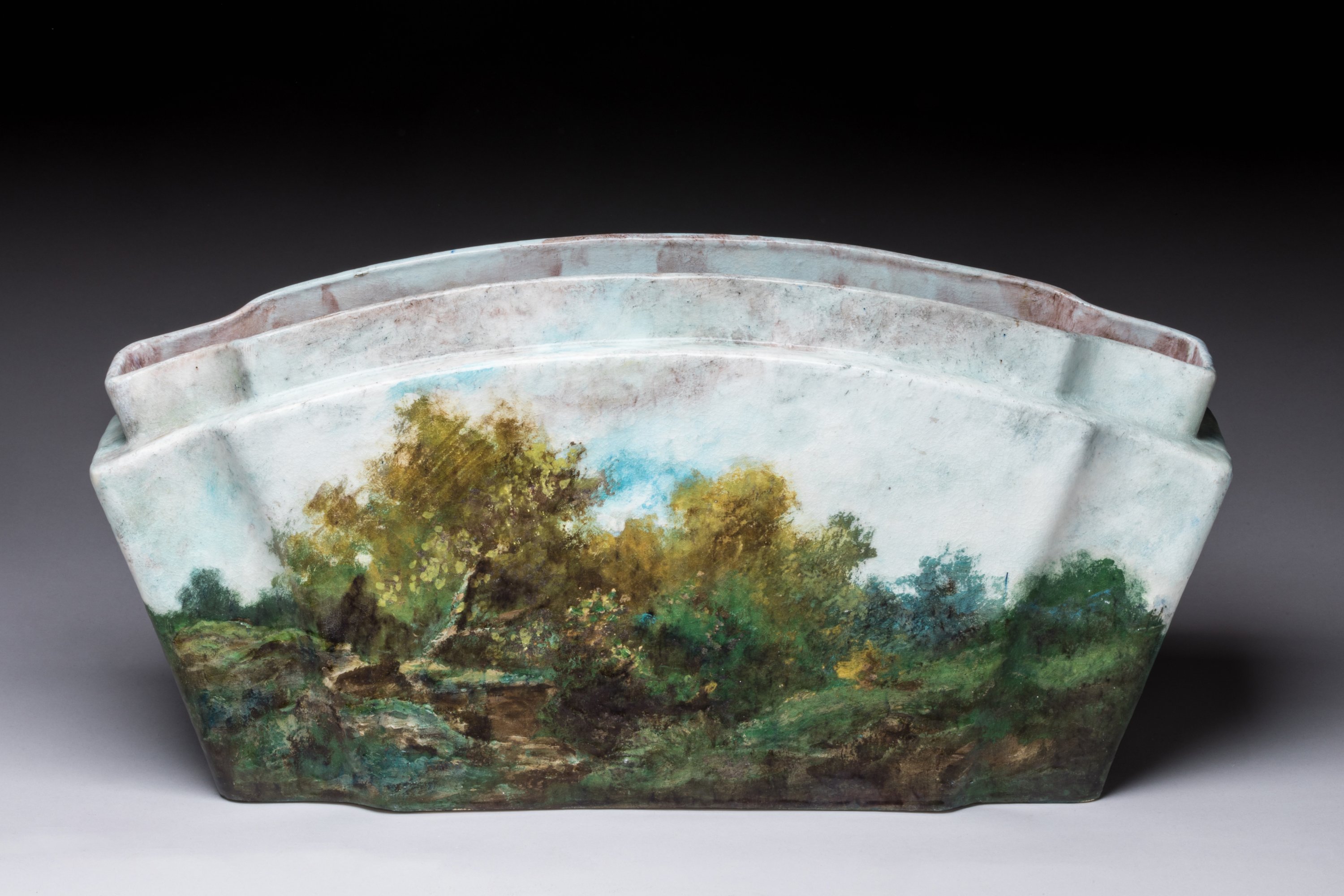 Grande jardinière éventail dans le goût de Barbizon, 1879