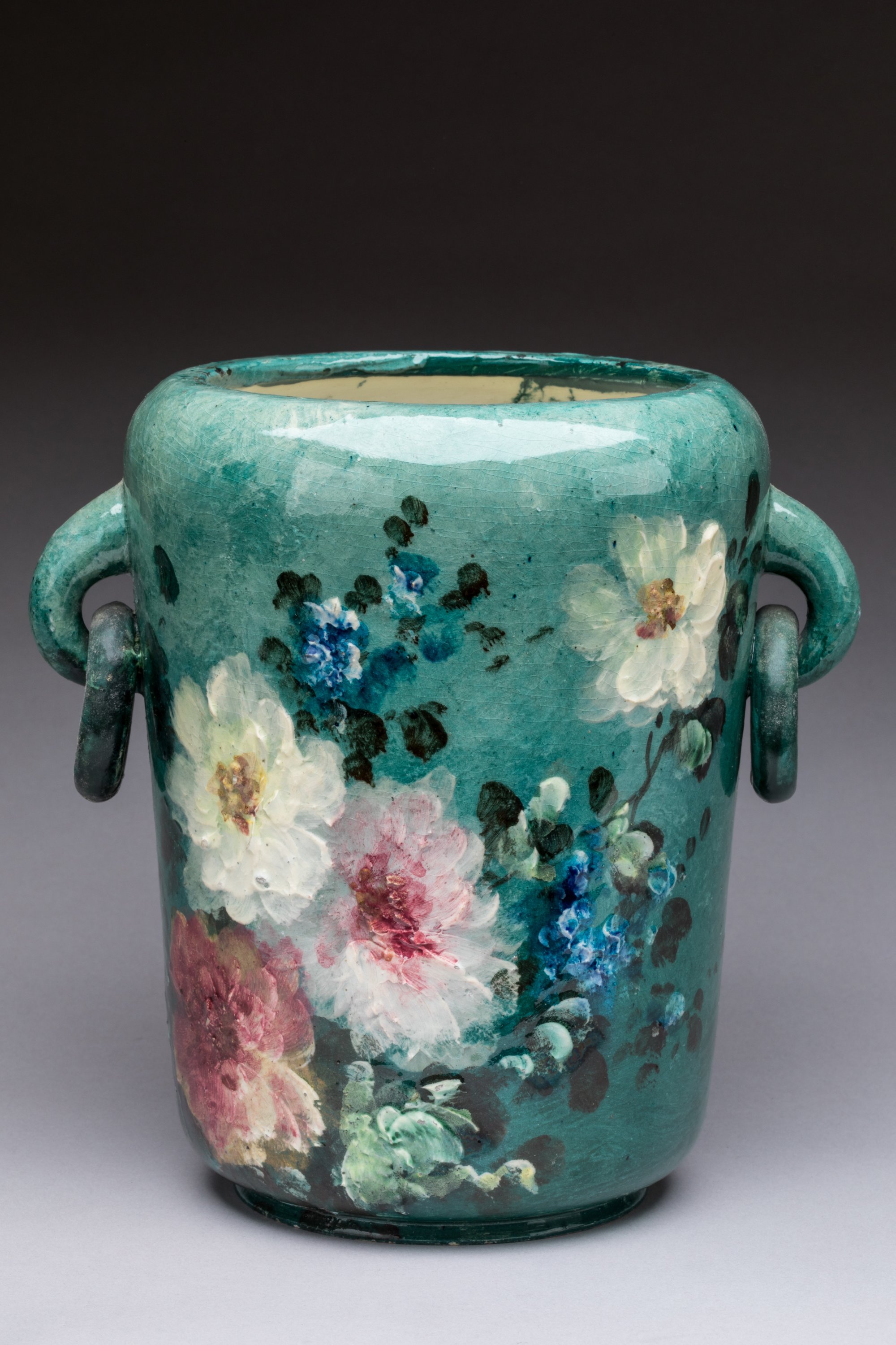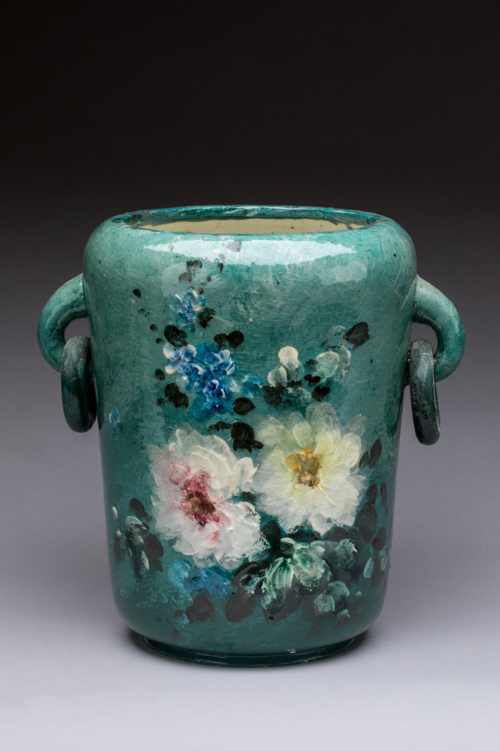 en céramique émaillée à décor de fleurs en barbotine impressionniste.