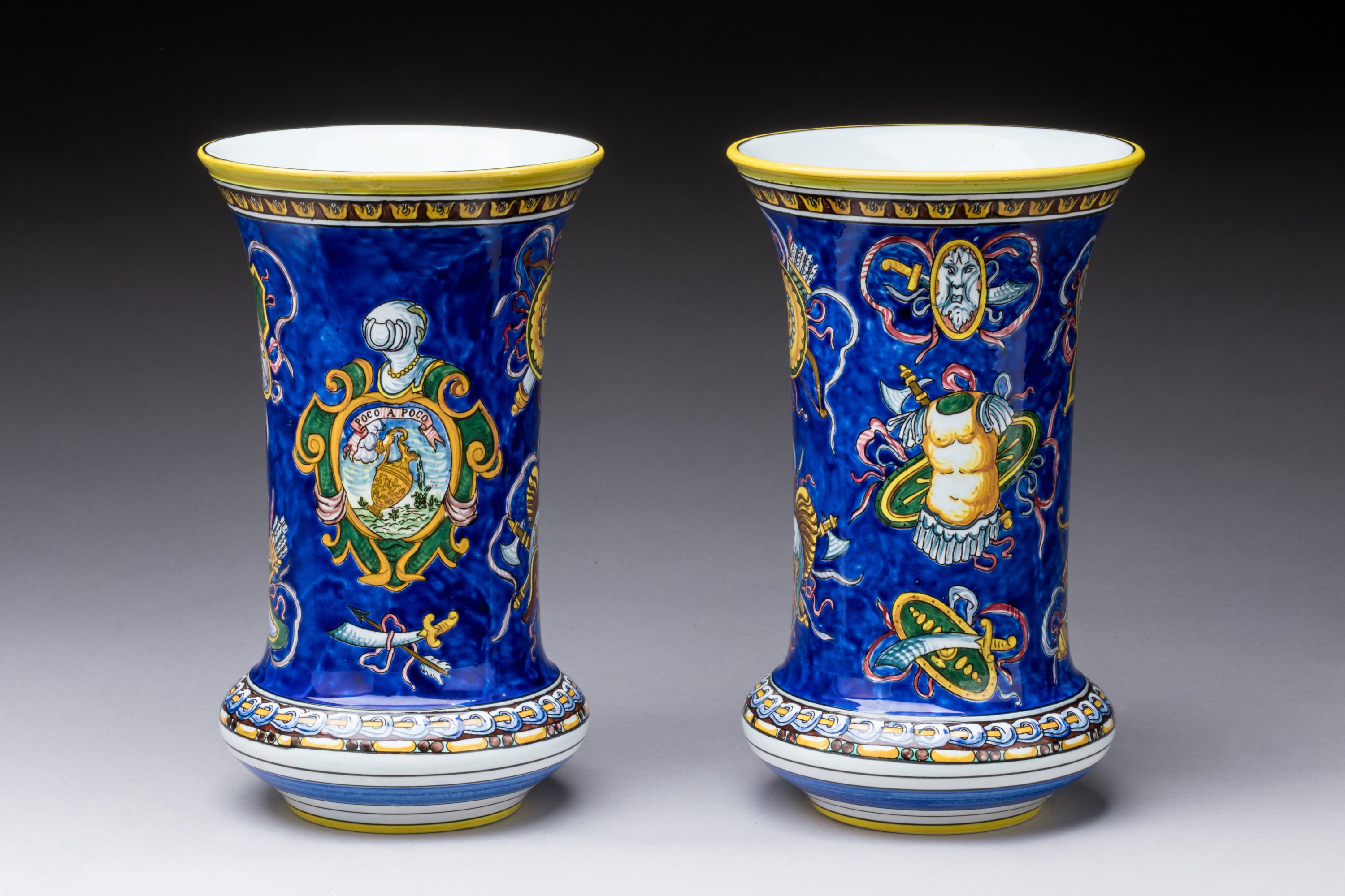 Paire de VASES CORNET à base enflée a Trofei, 1869
