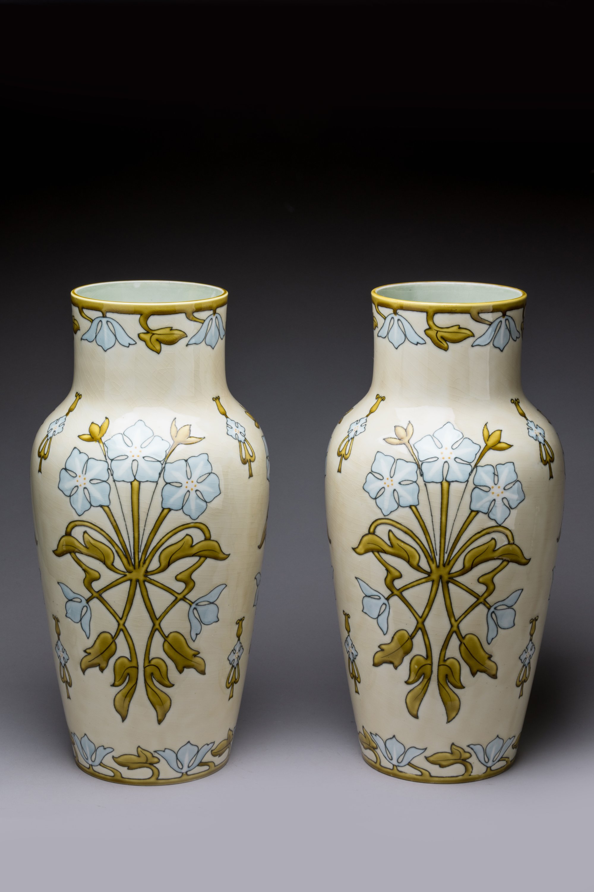 Exceptionnelle paire de VASES aux EDELWEISS Art Déco, c. 1880en...