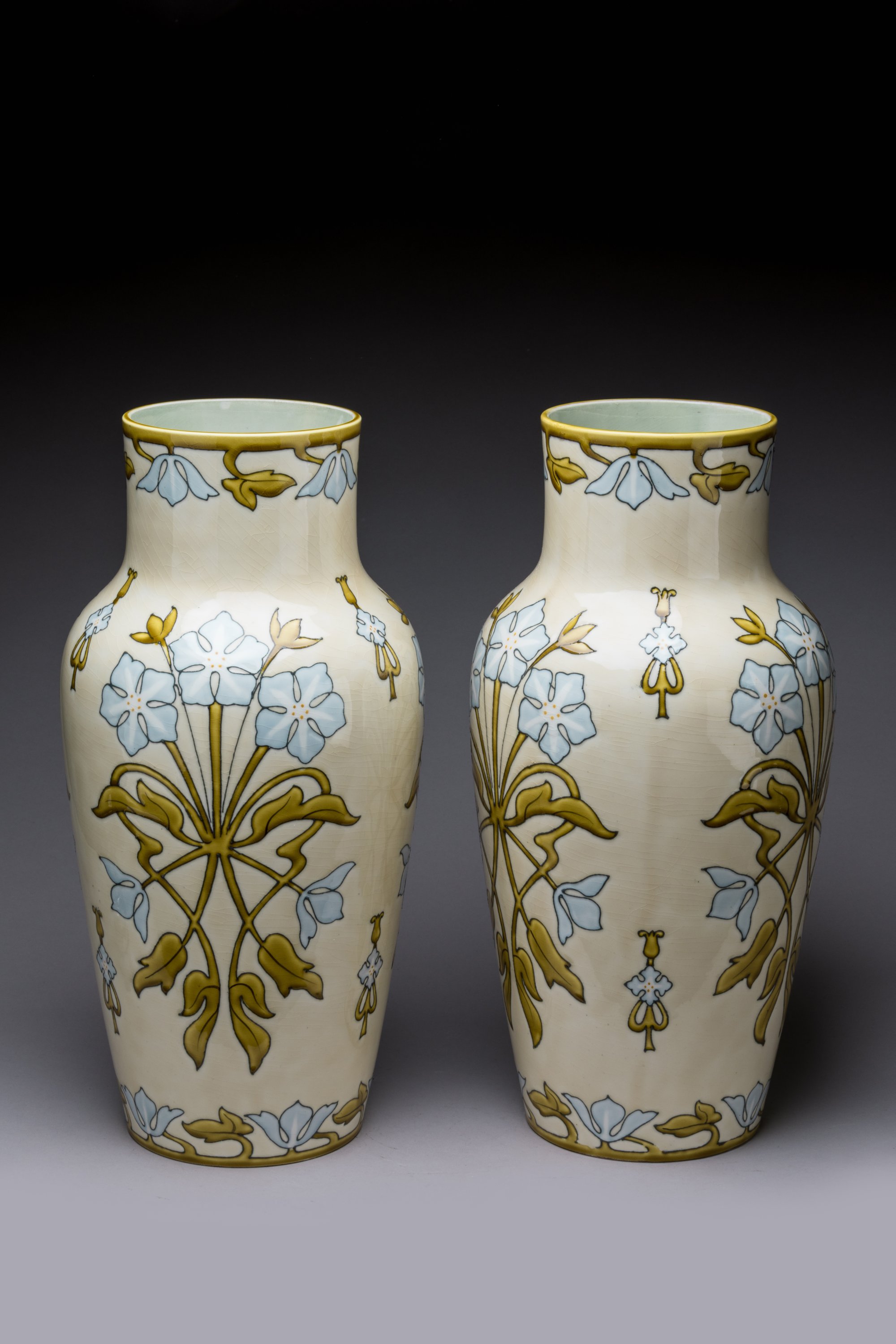 Exceptionnelle paire de VASES aux EDELWEISS Art Déco, c. 1880
