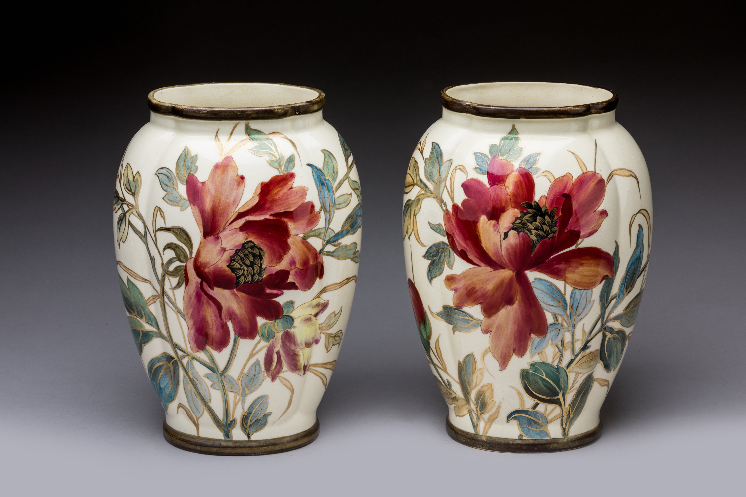 Paire de VASES quadrilobés aux LAMPAS
