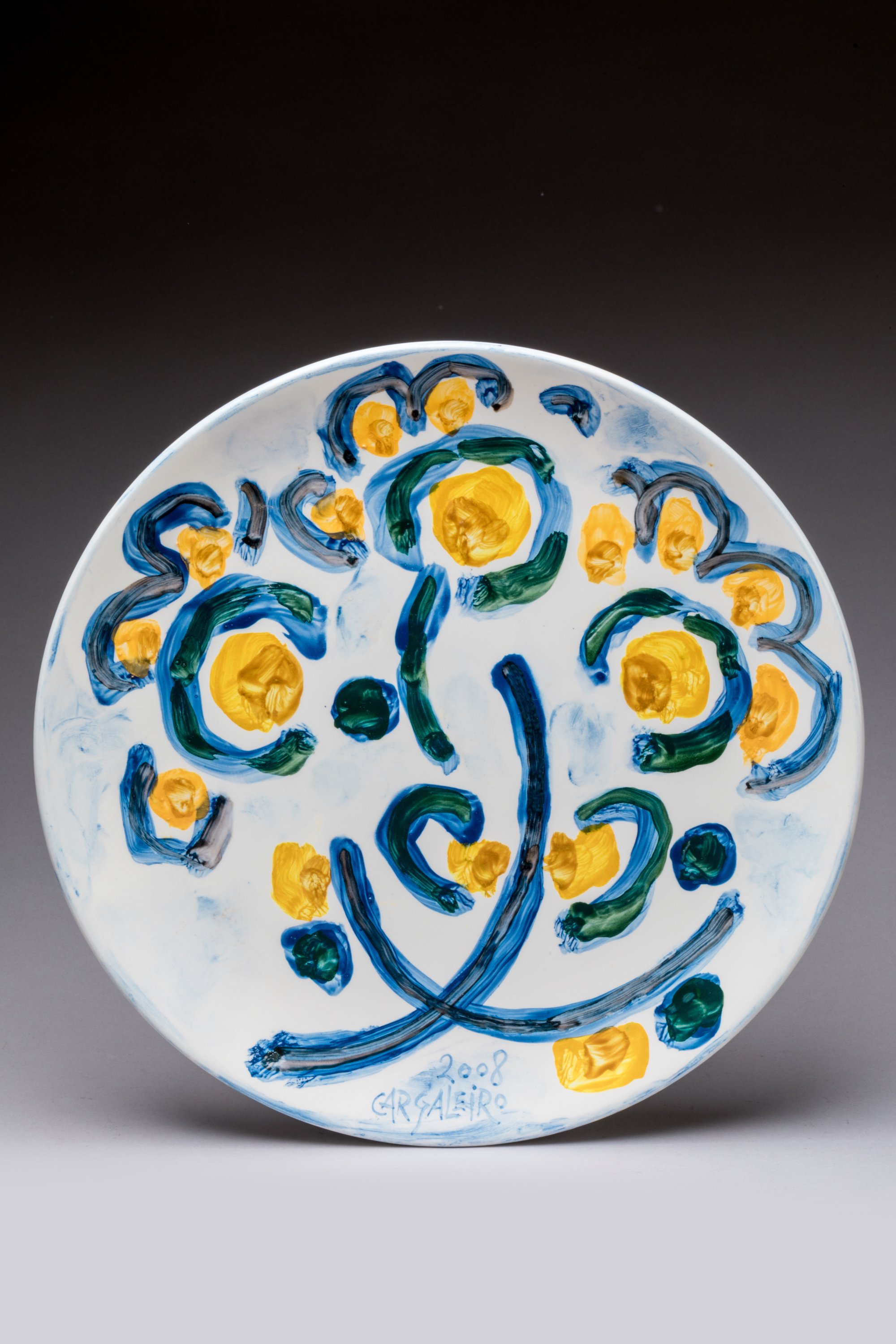 Manuel CARGALEIRO (né en 1927 au Portugal)Plat rond aux cerises,...