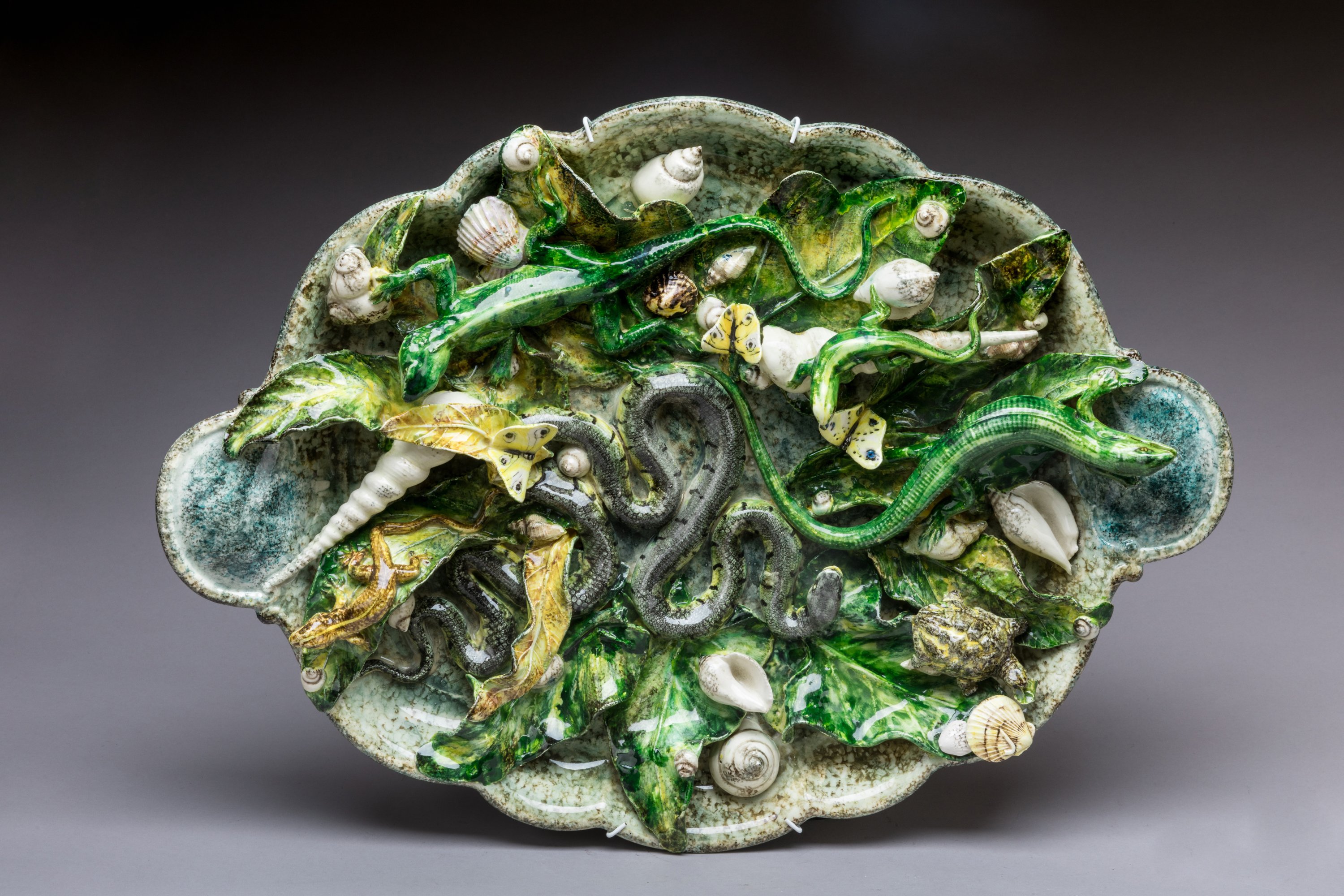 en barbotine émaillée dans le goût de Bernard Palissy.