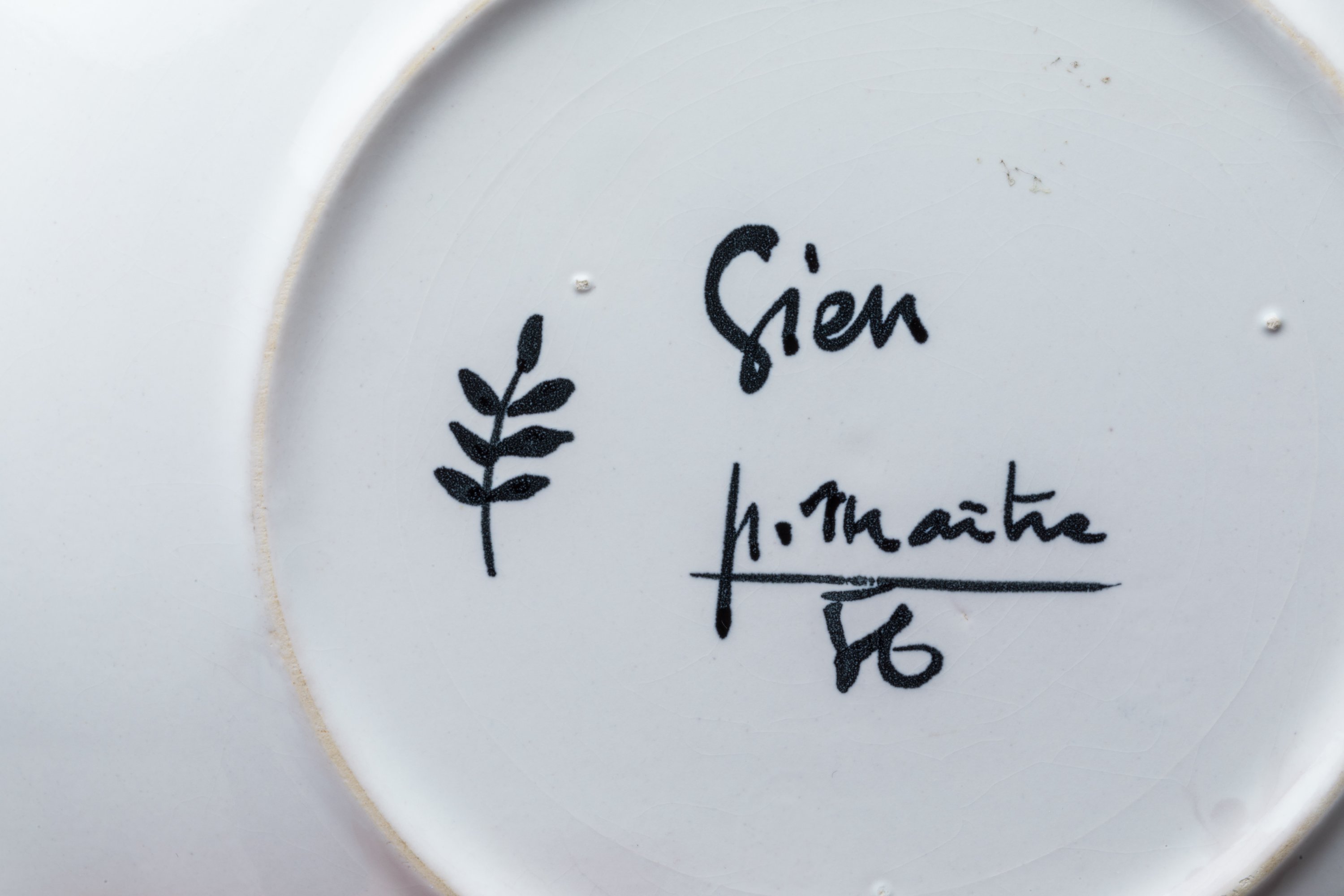 Marque de Gien olographe à l'épi de blé, signature de l'artiste et date au revers.