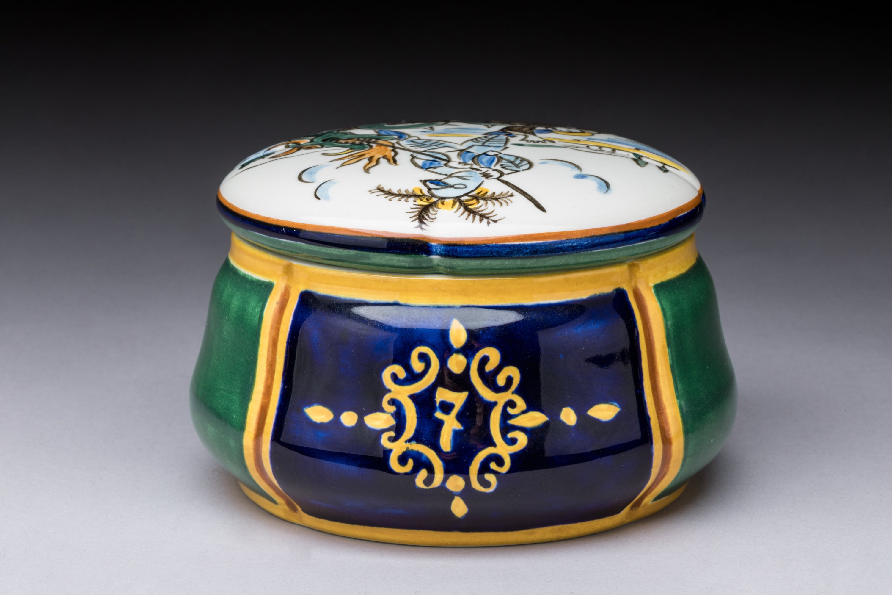 en céramique émaillée au décor peint attribué à Pierre Maître et marquée "Pèlerinage 1951".